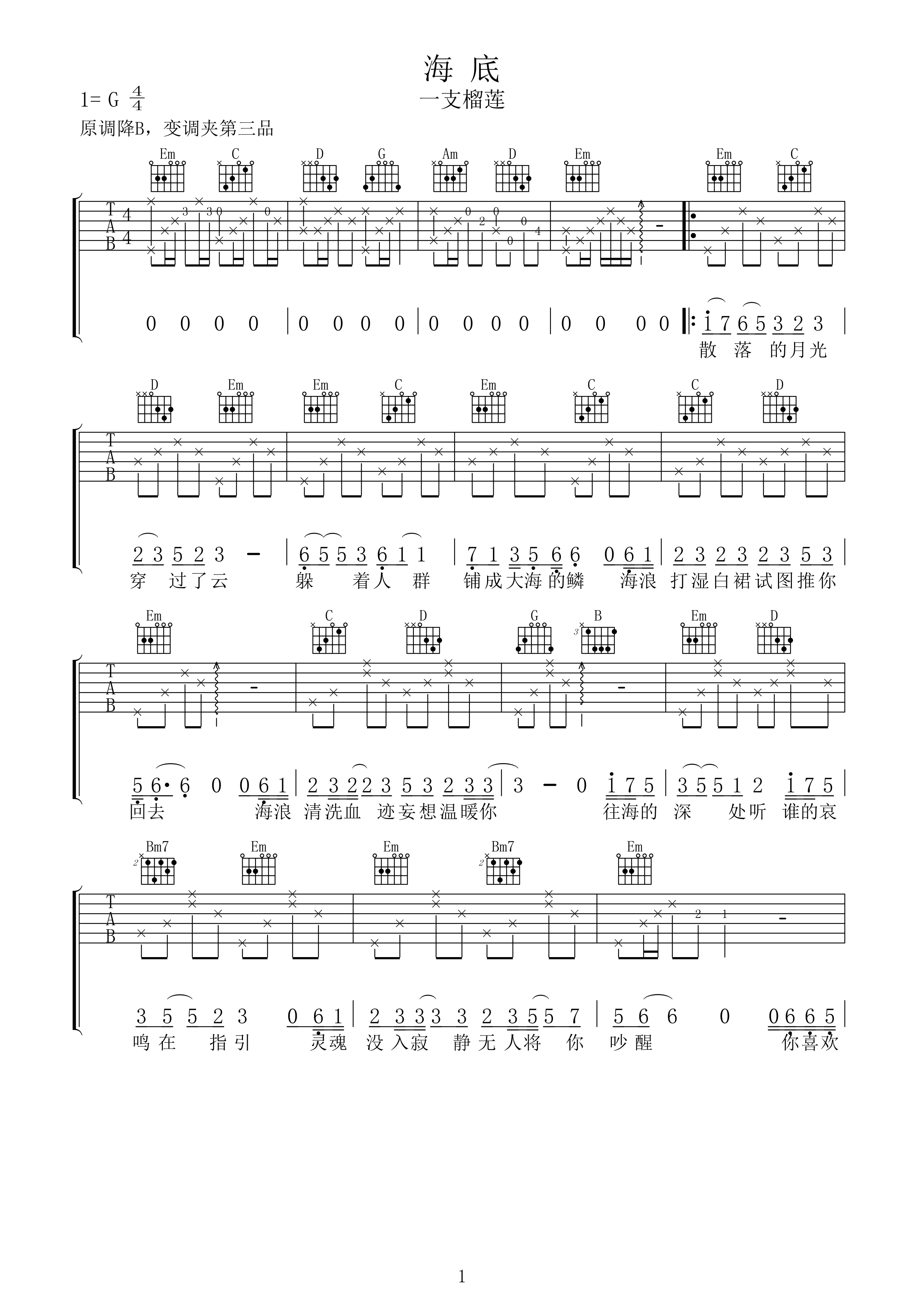 吉他谱 | 热门弹唱《海底》