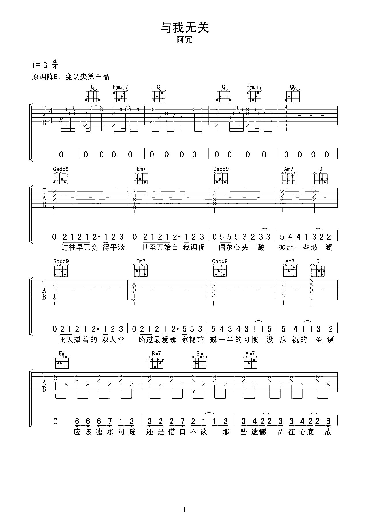 演员吉他谱_G调弹唱谱_薛之谦_六线谱高
