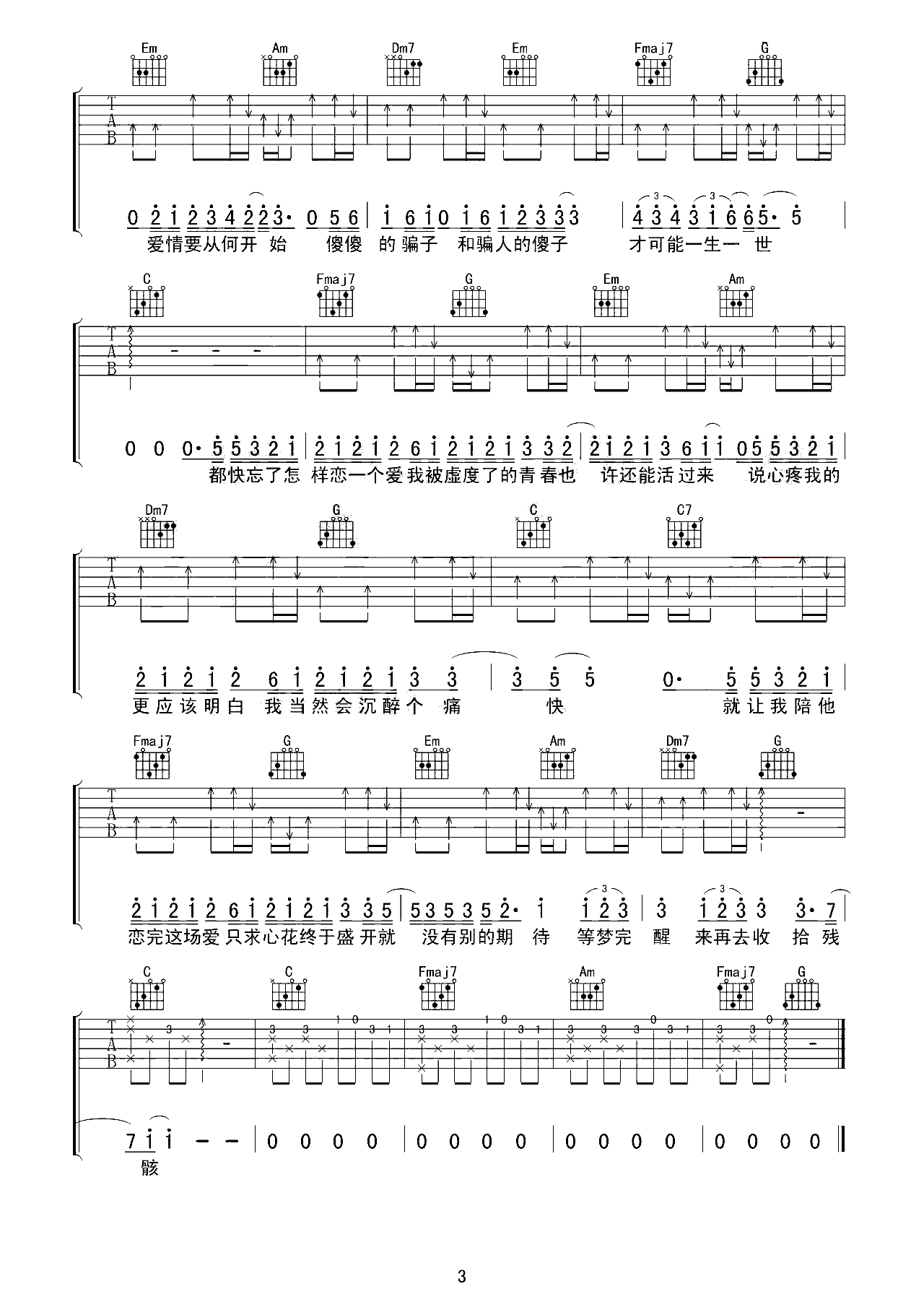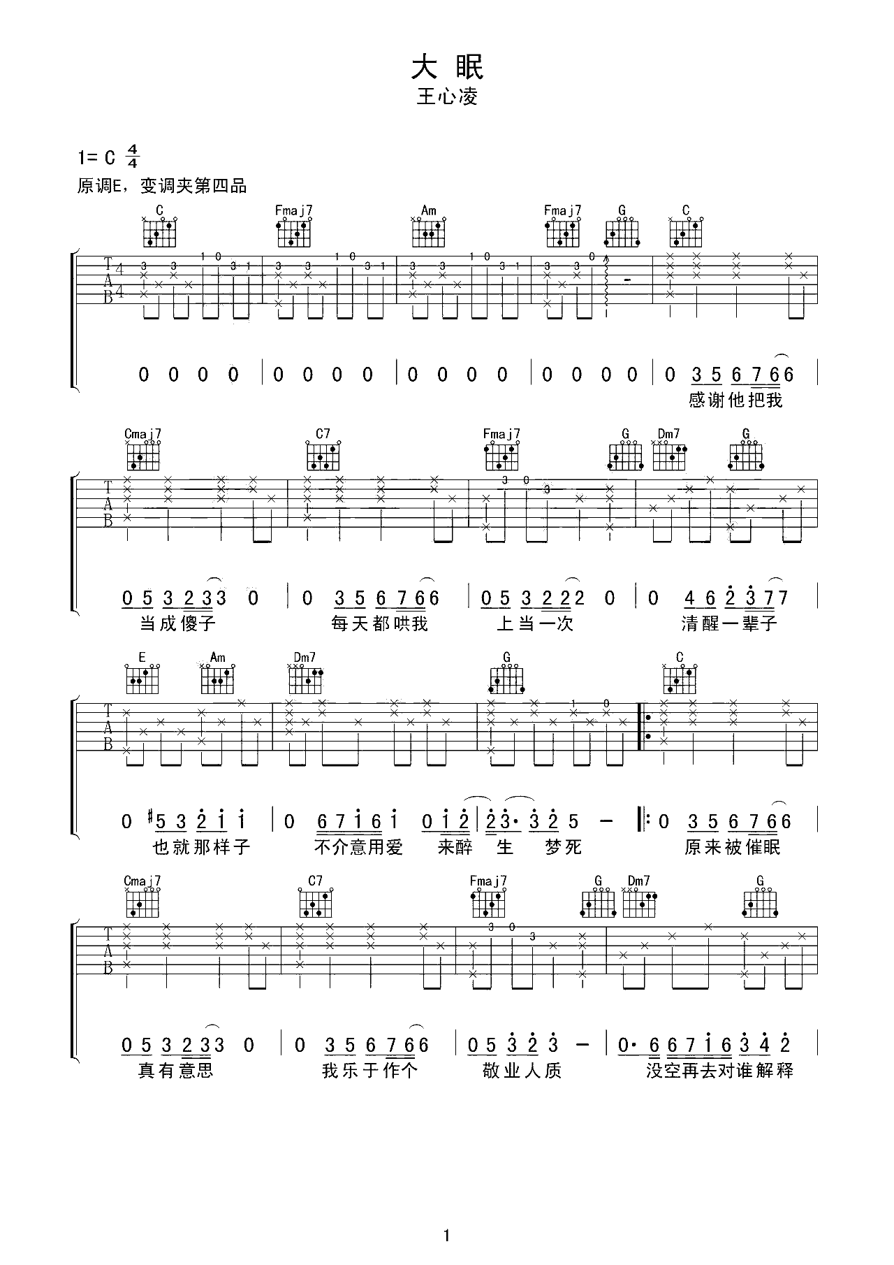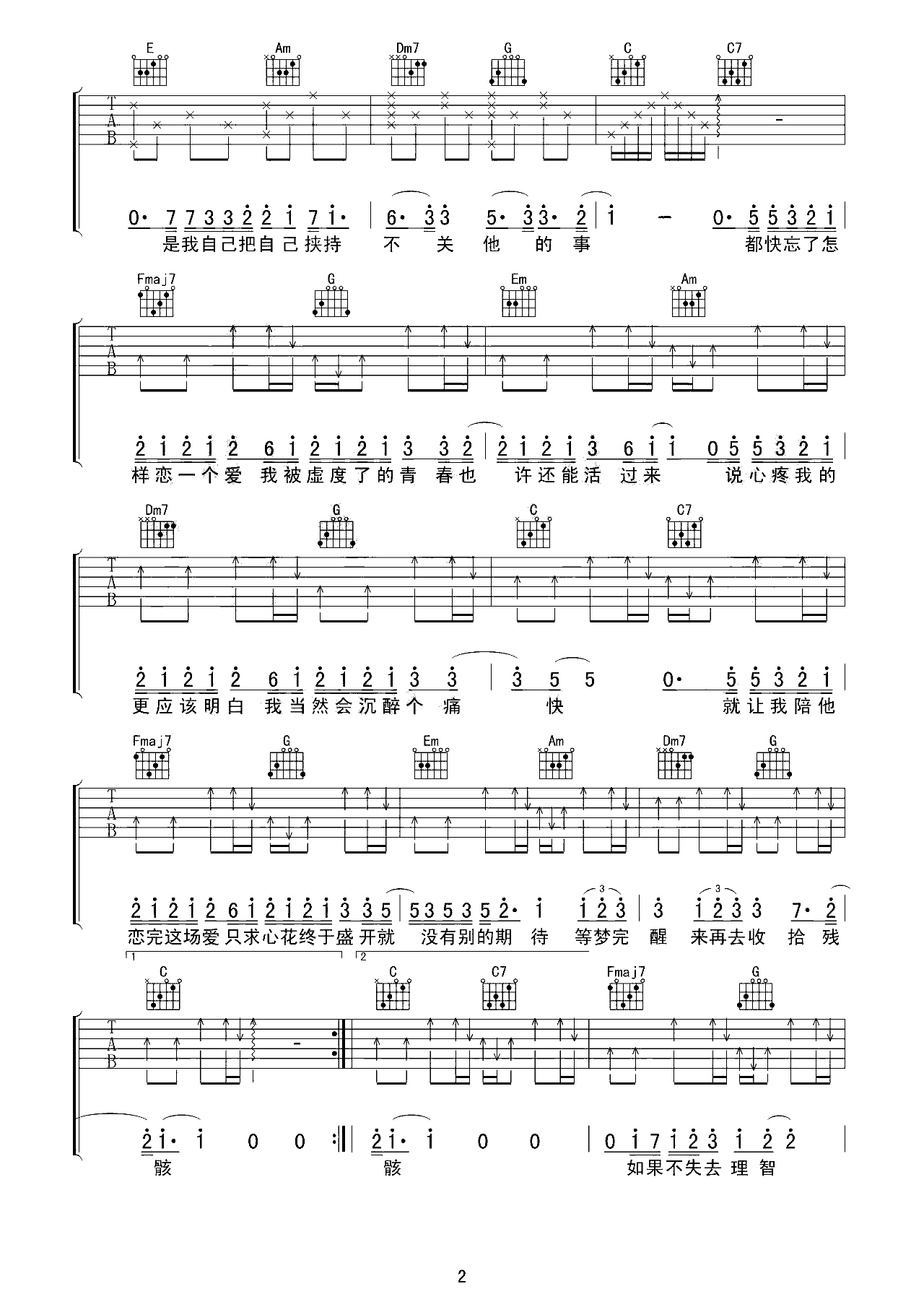 薛之谦《高尚》吉他谱 原版六线谱 G调