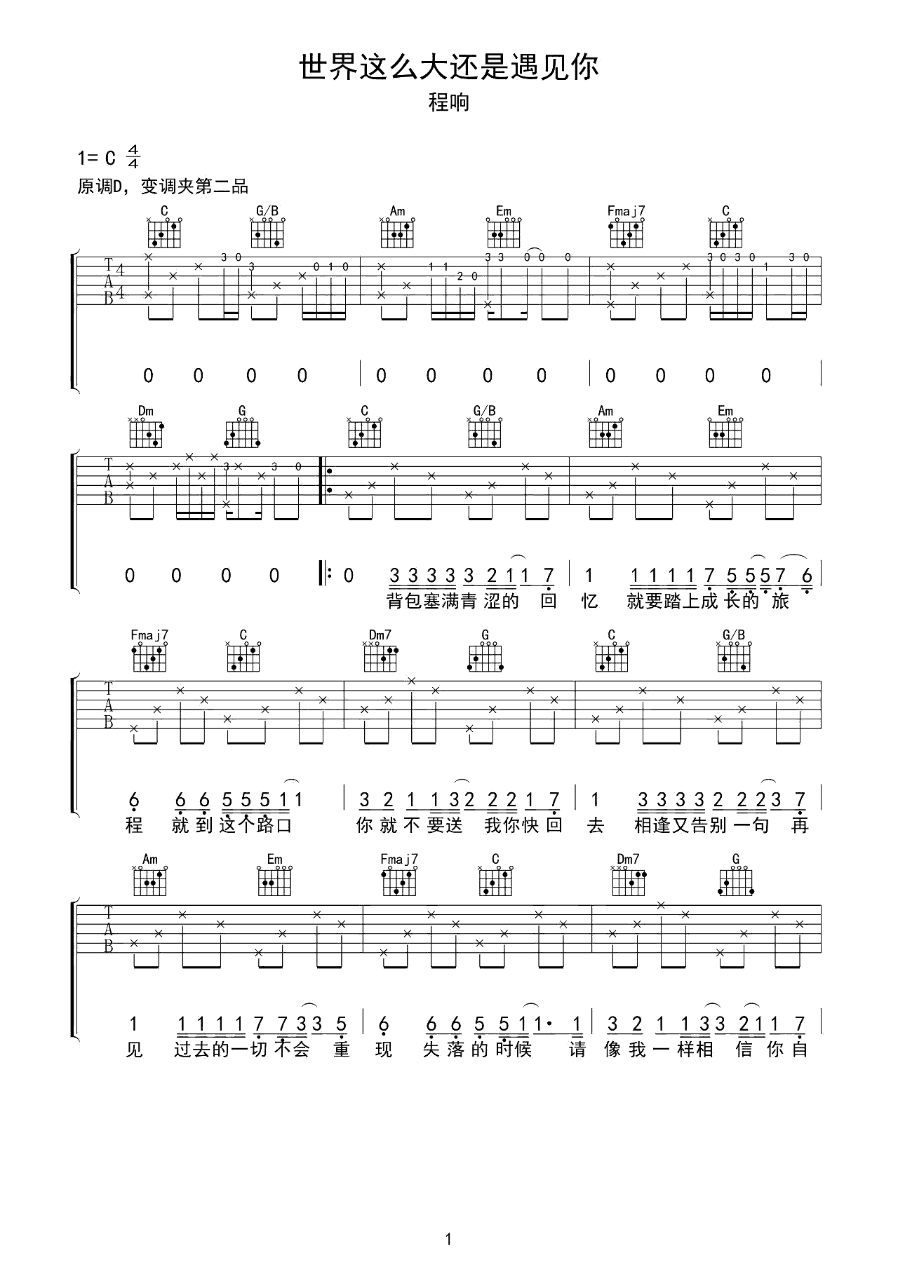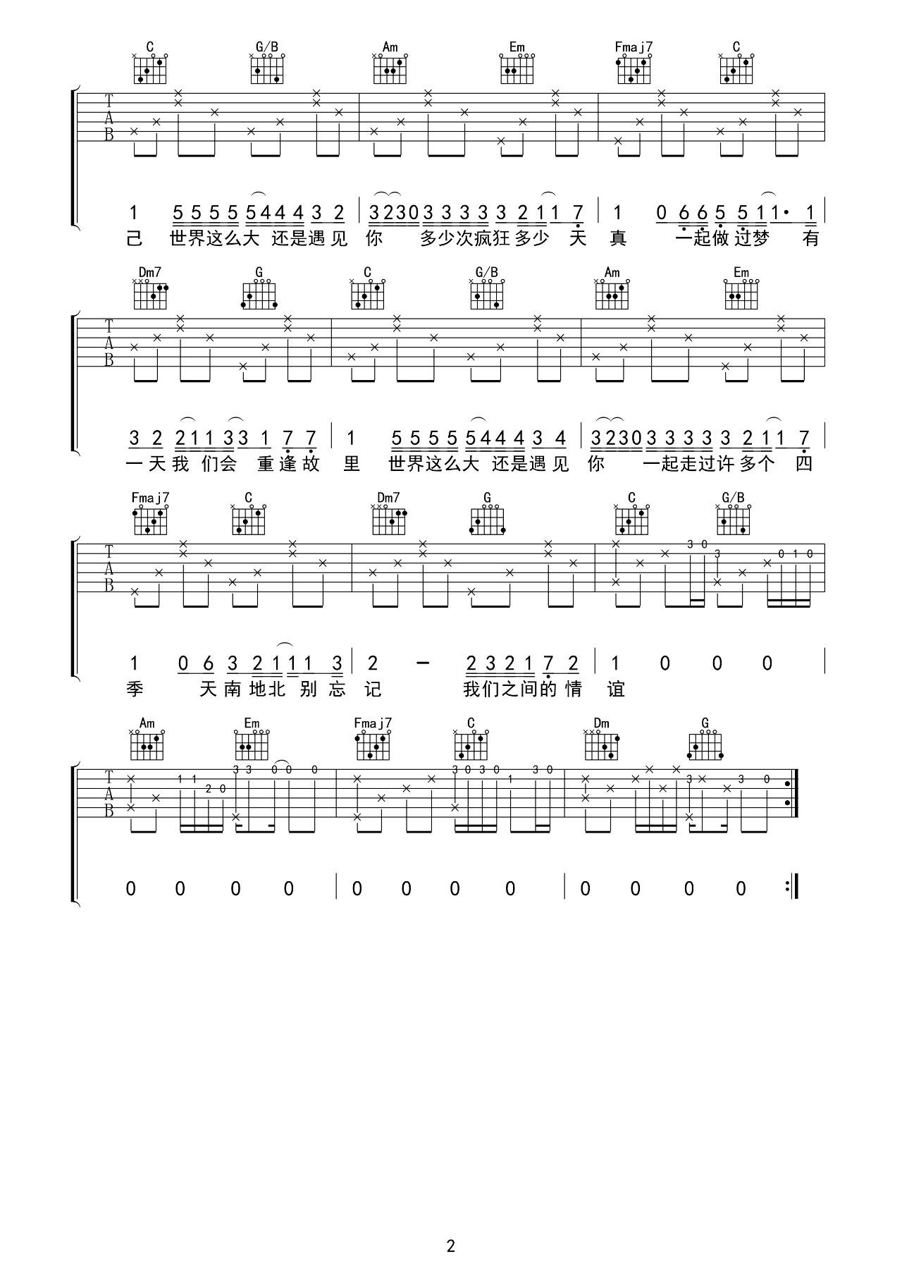 吉他谱 | 热门弹唱《世界这么大还是遇见你》