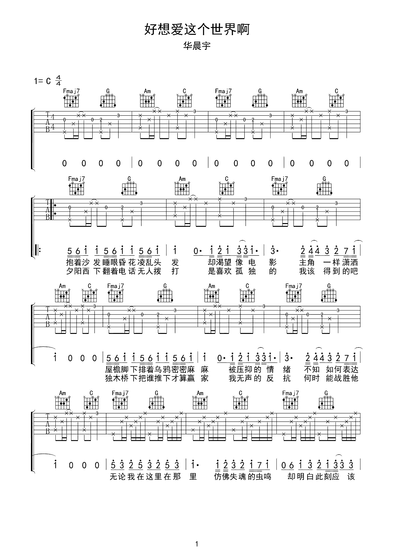 吉他谱 | 热门弹唱《好想爱这个世界啊》