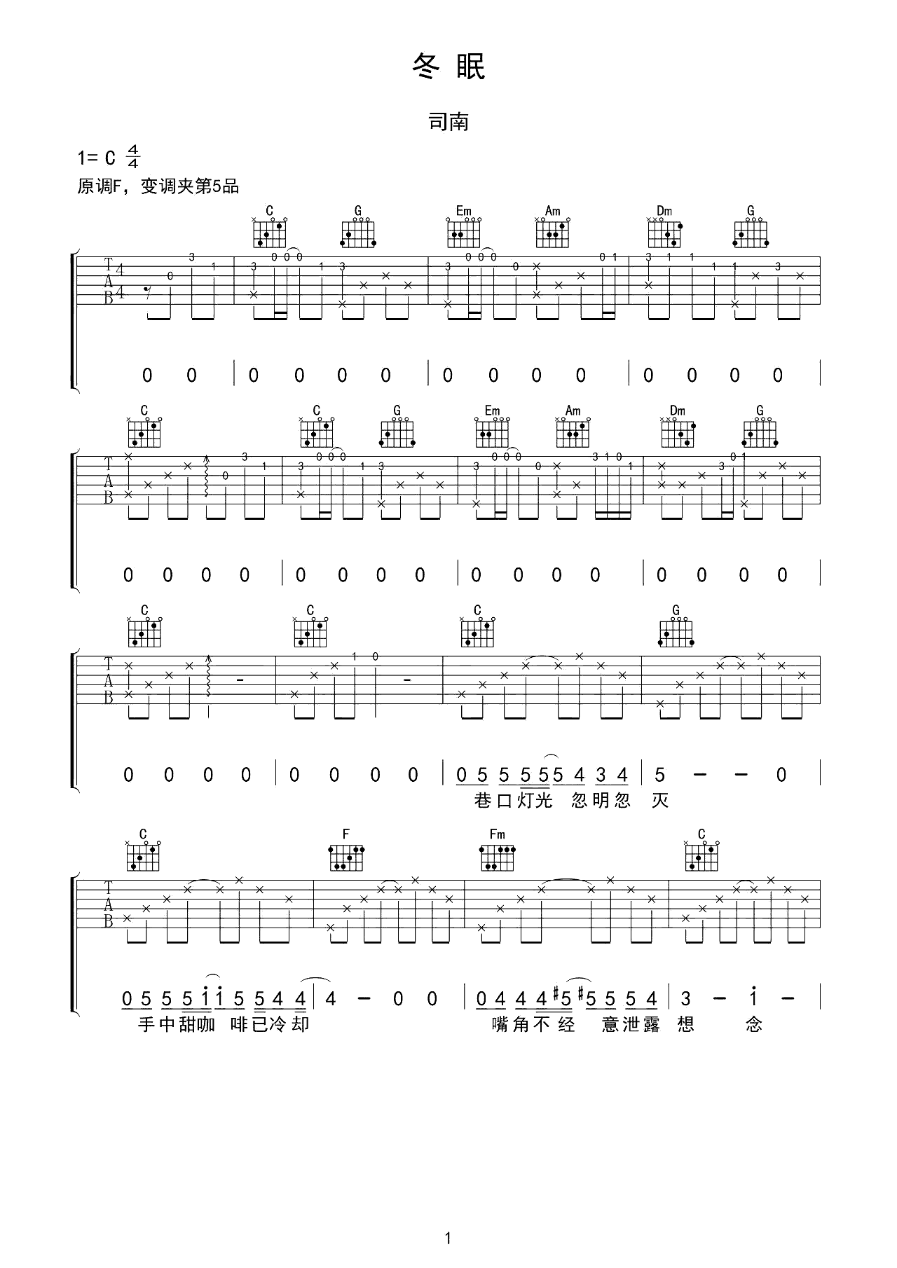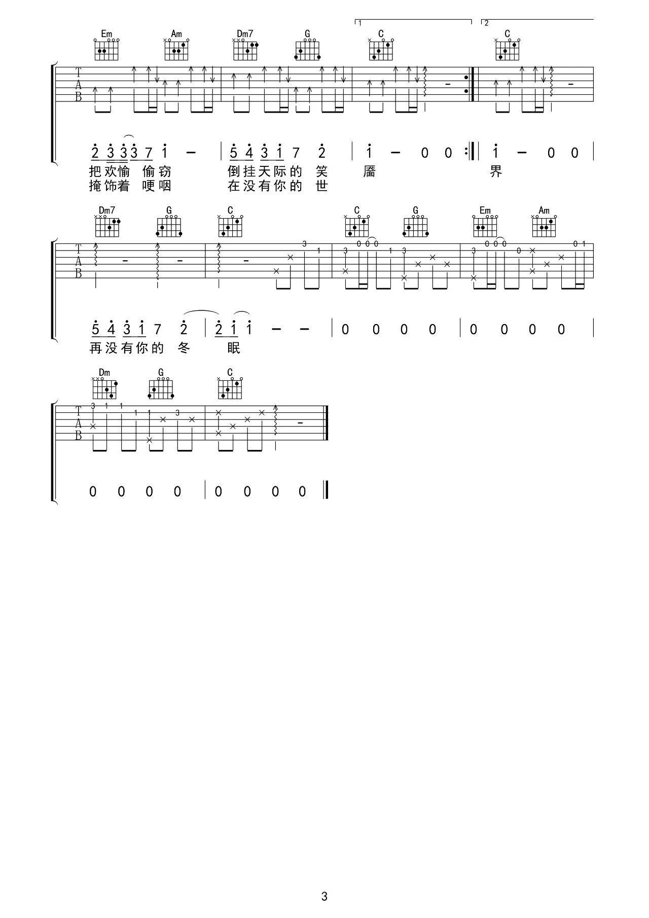 吉他谱 | 热门弹唱《冬眠》
