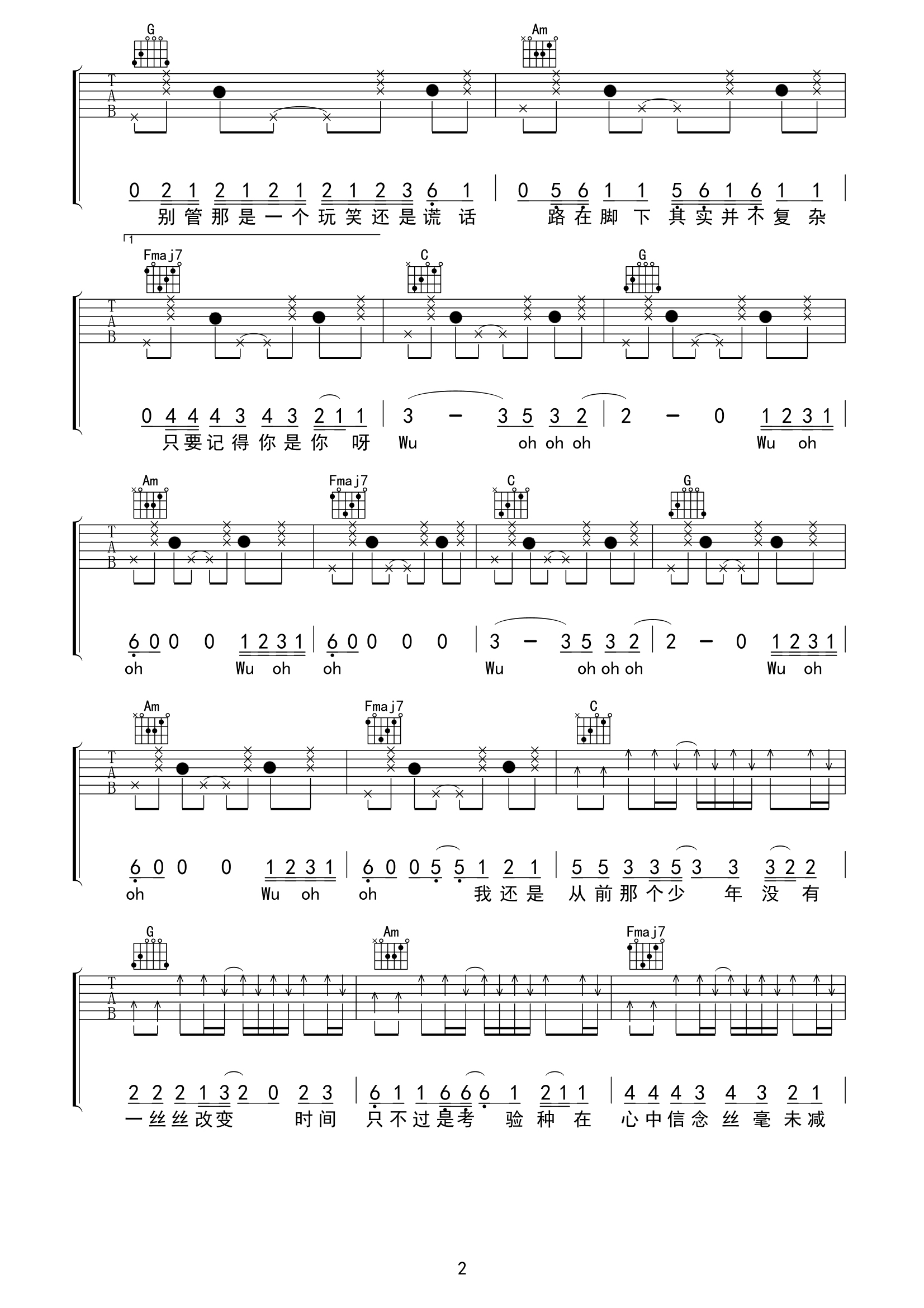 我不难过吉他
