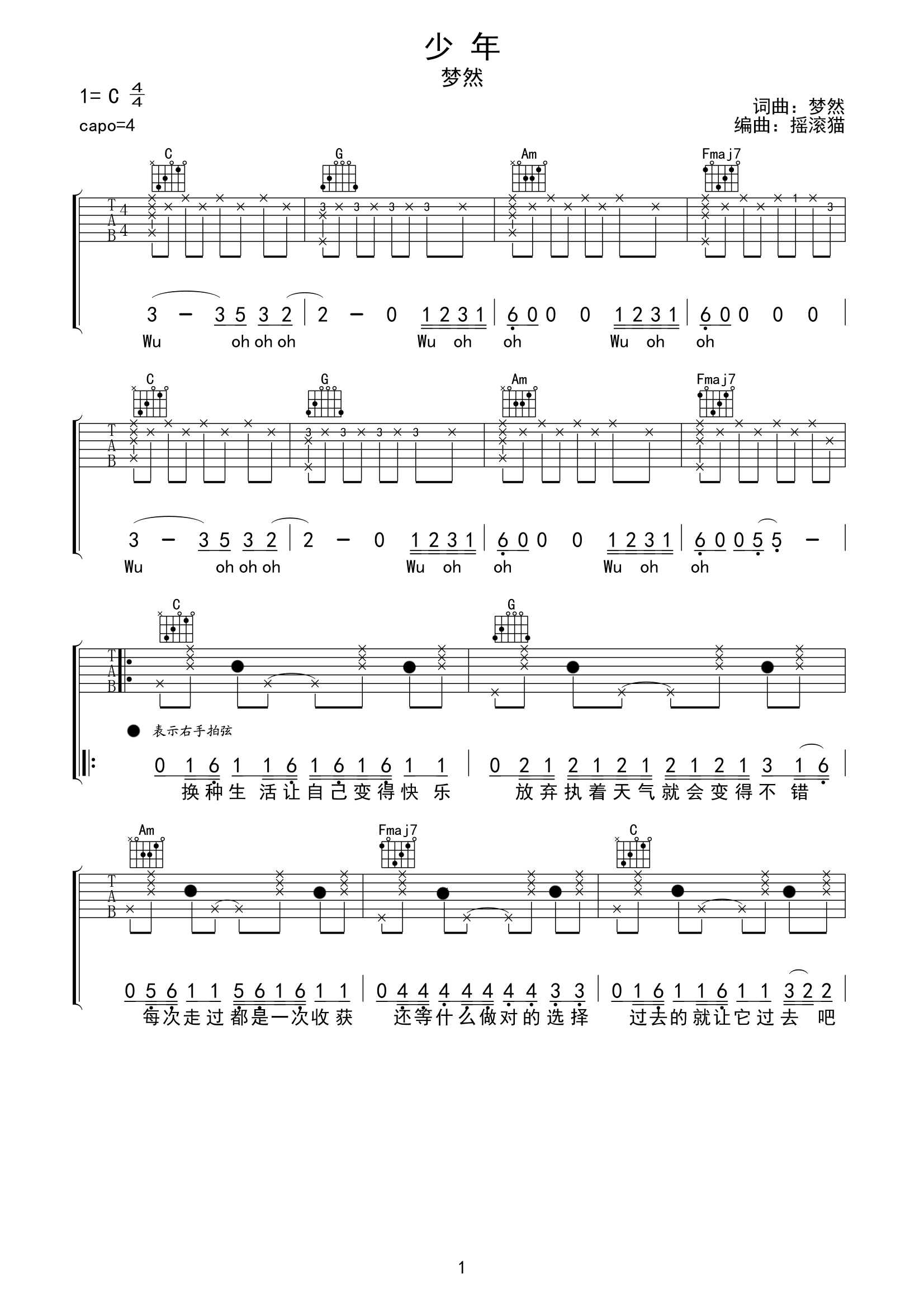 吉他谱 | 热门弹唱《少年》