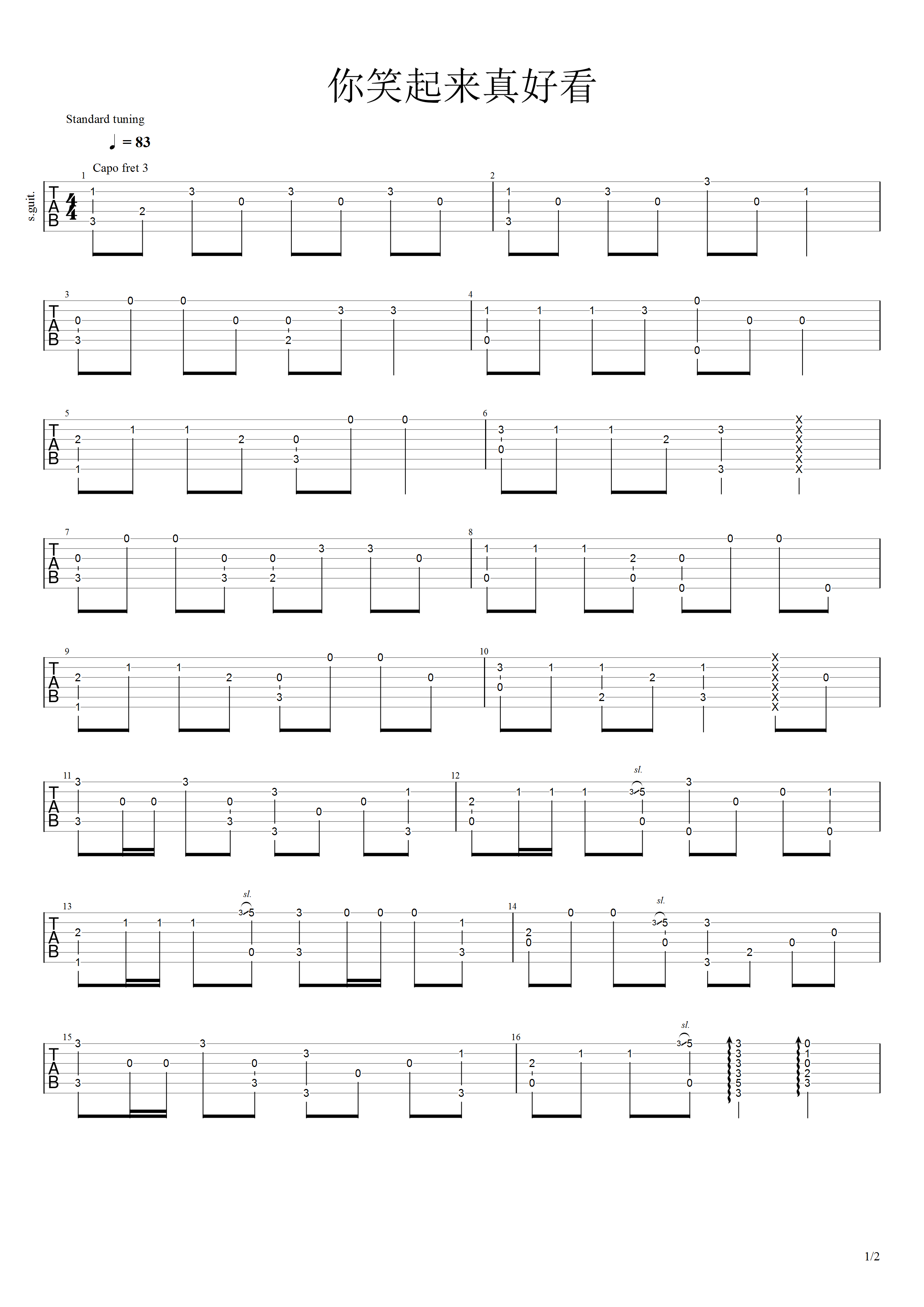 吉他谱 | 经典指弹《你笑起来真好看》