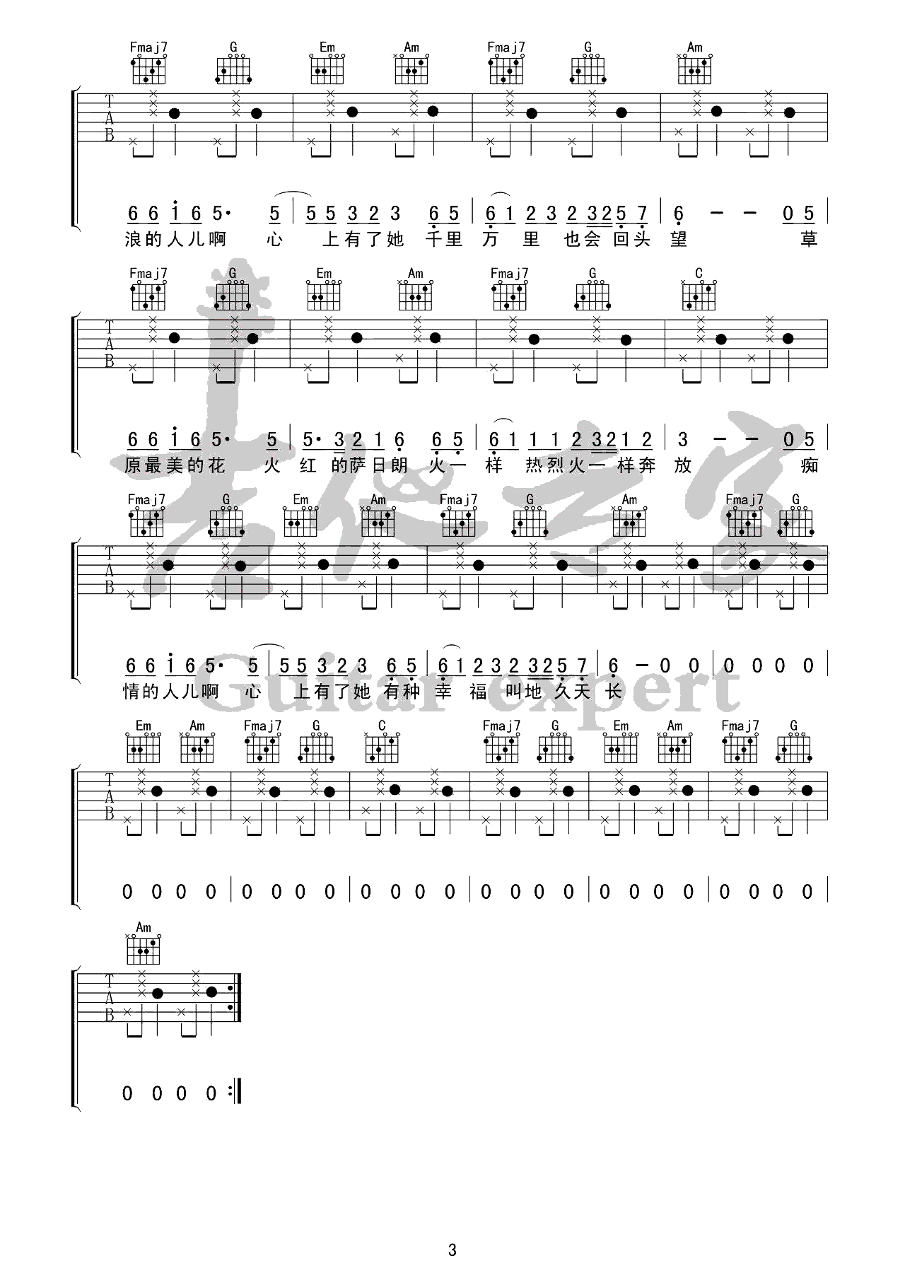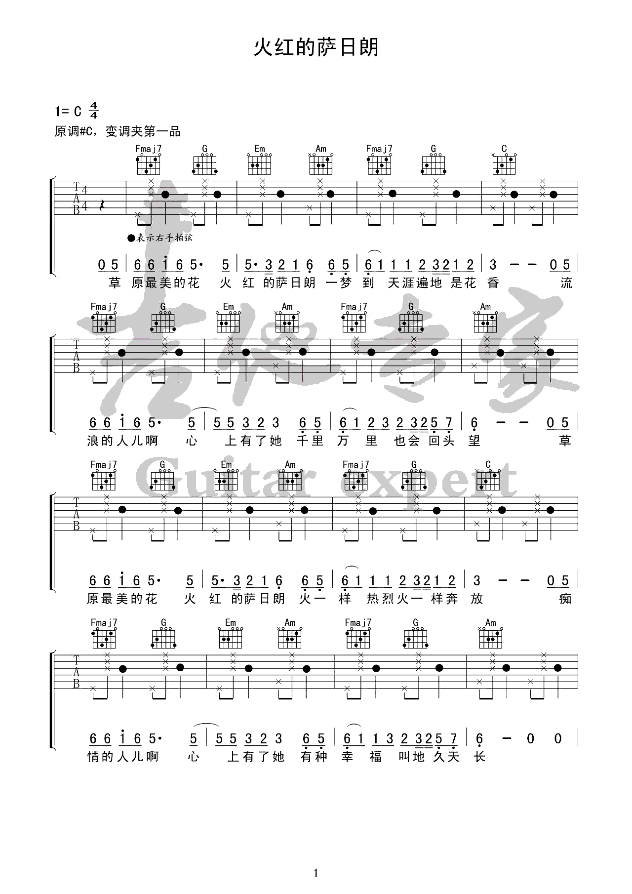 吉他谱 | 热门弹唱《火红的萨日朗》