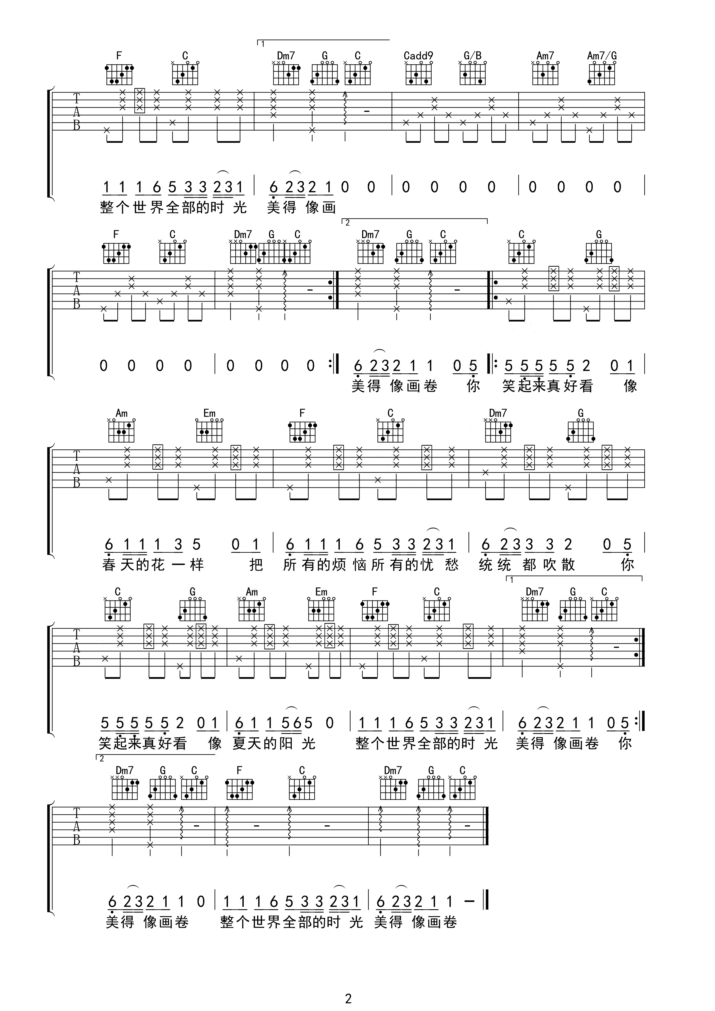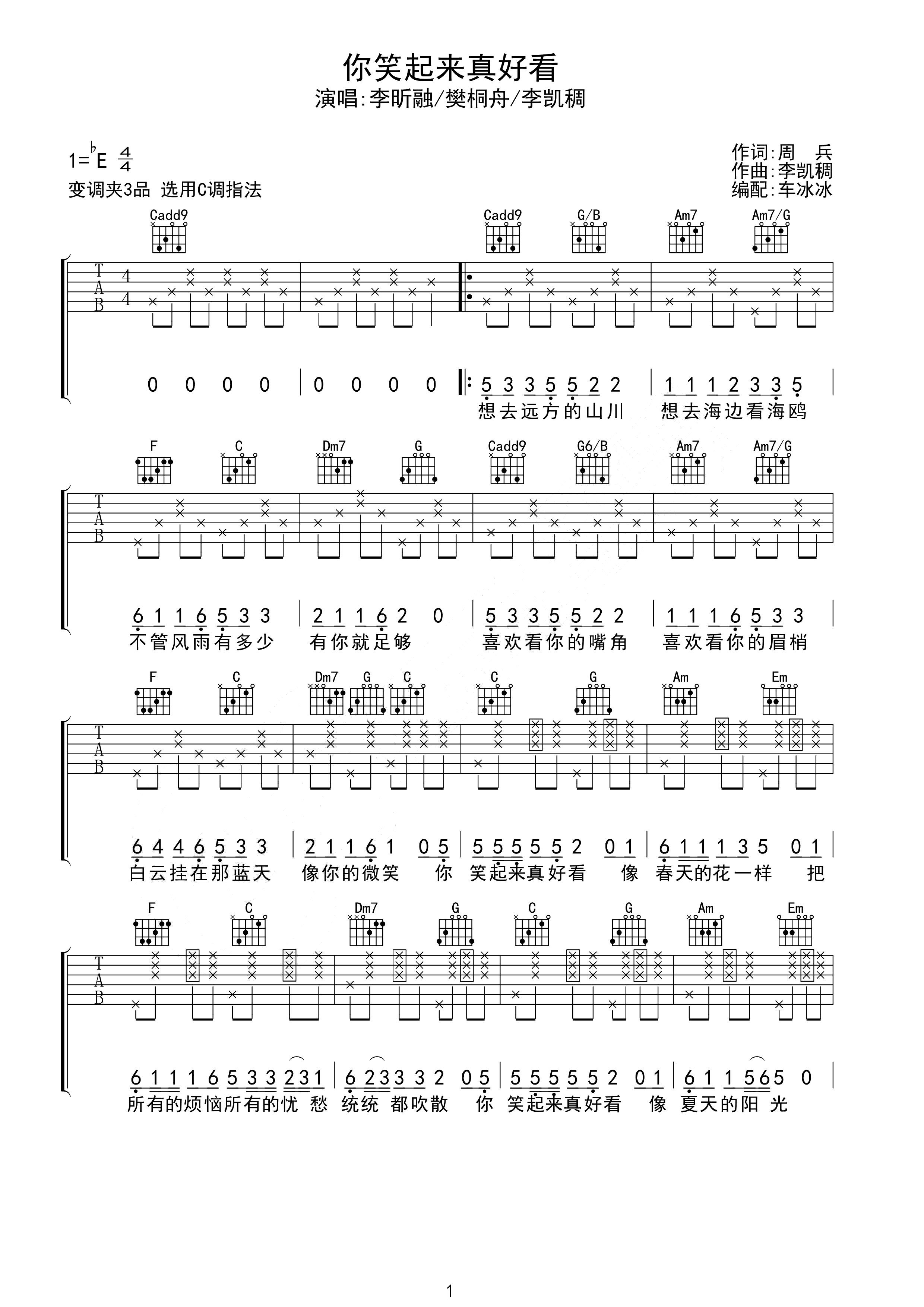 吉他谱 | 热门弹唱《你笑起来真好看》