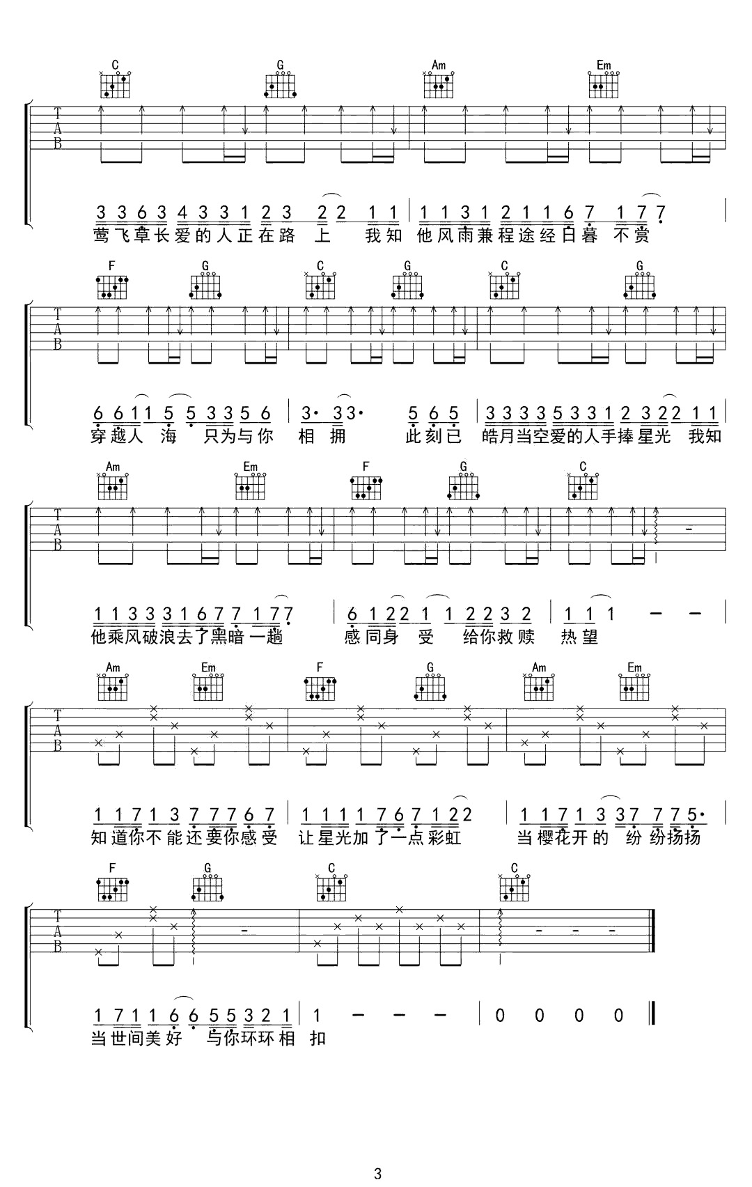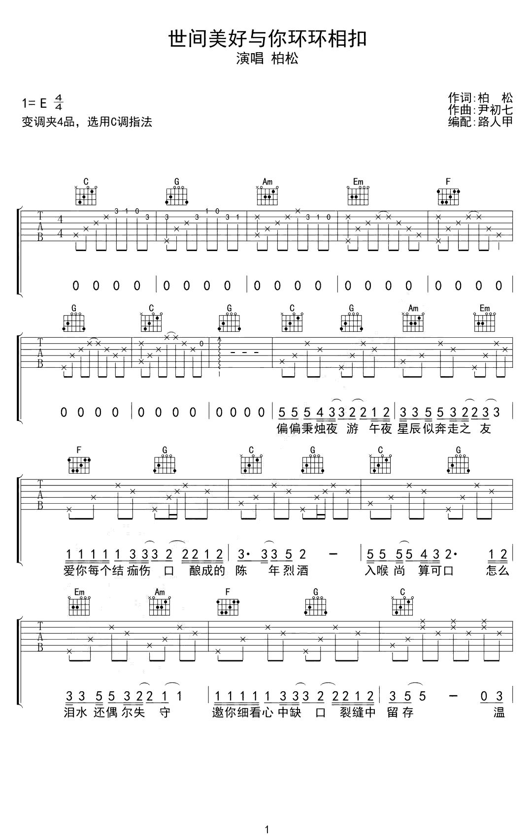 吉他谱 | 热门弹唱《世间美好与你环环相扣》