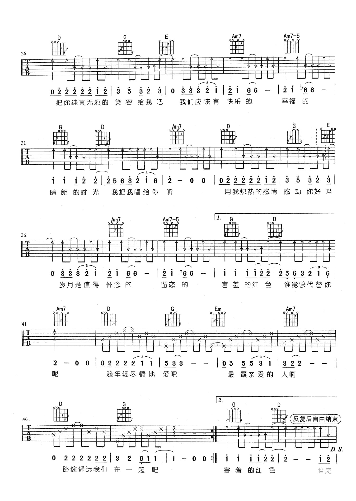 相思如麻吉他谱
