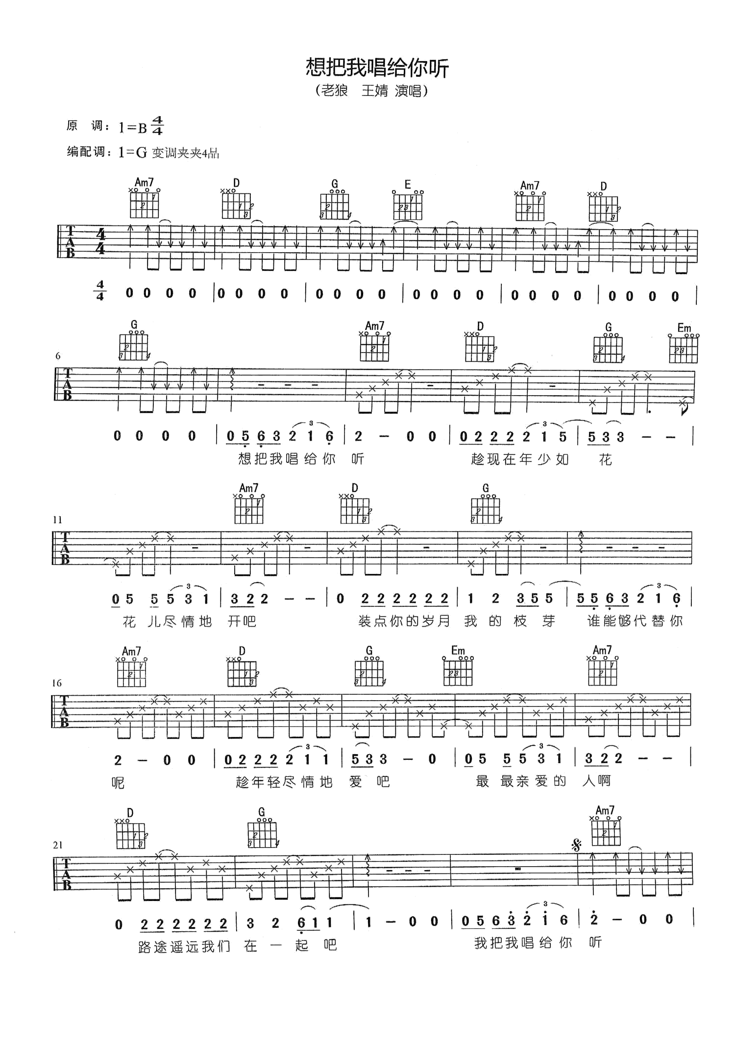 吉他谱 | 热门弹唱《想把我唱给你听》