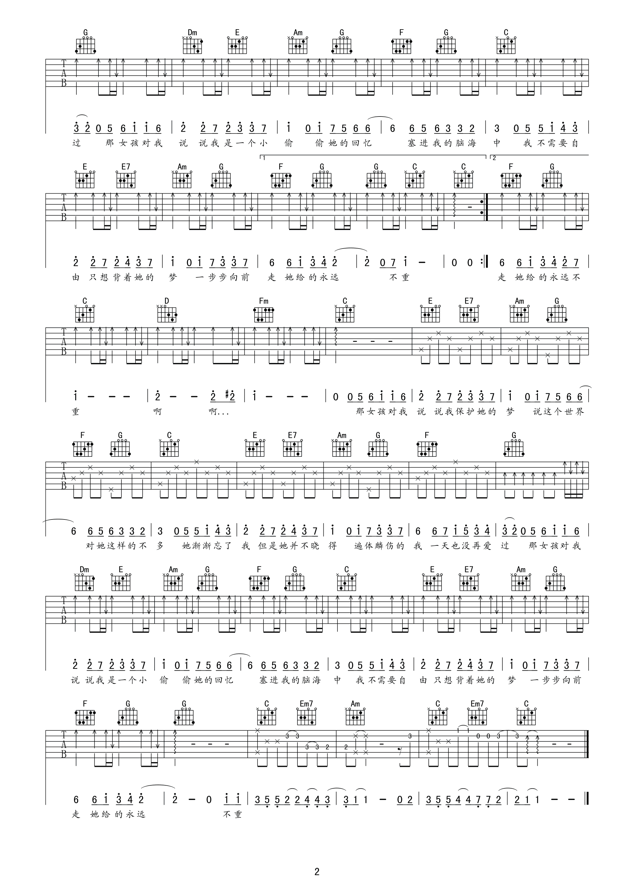 吉他谱 | 热门弹唱《那女孩对我说》