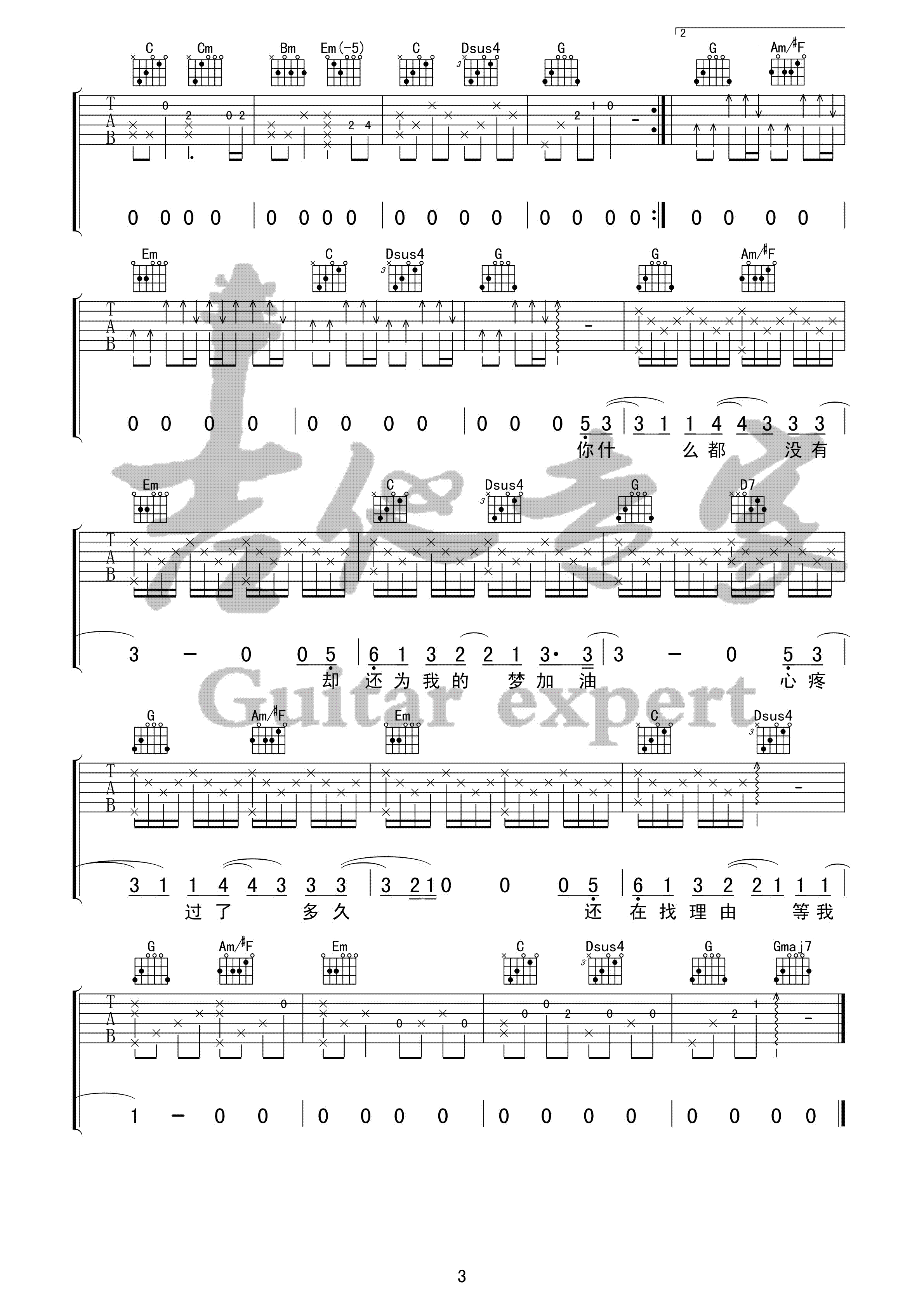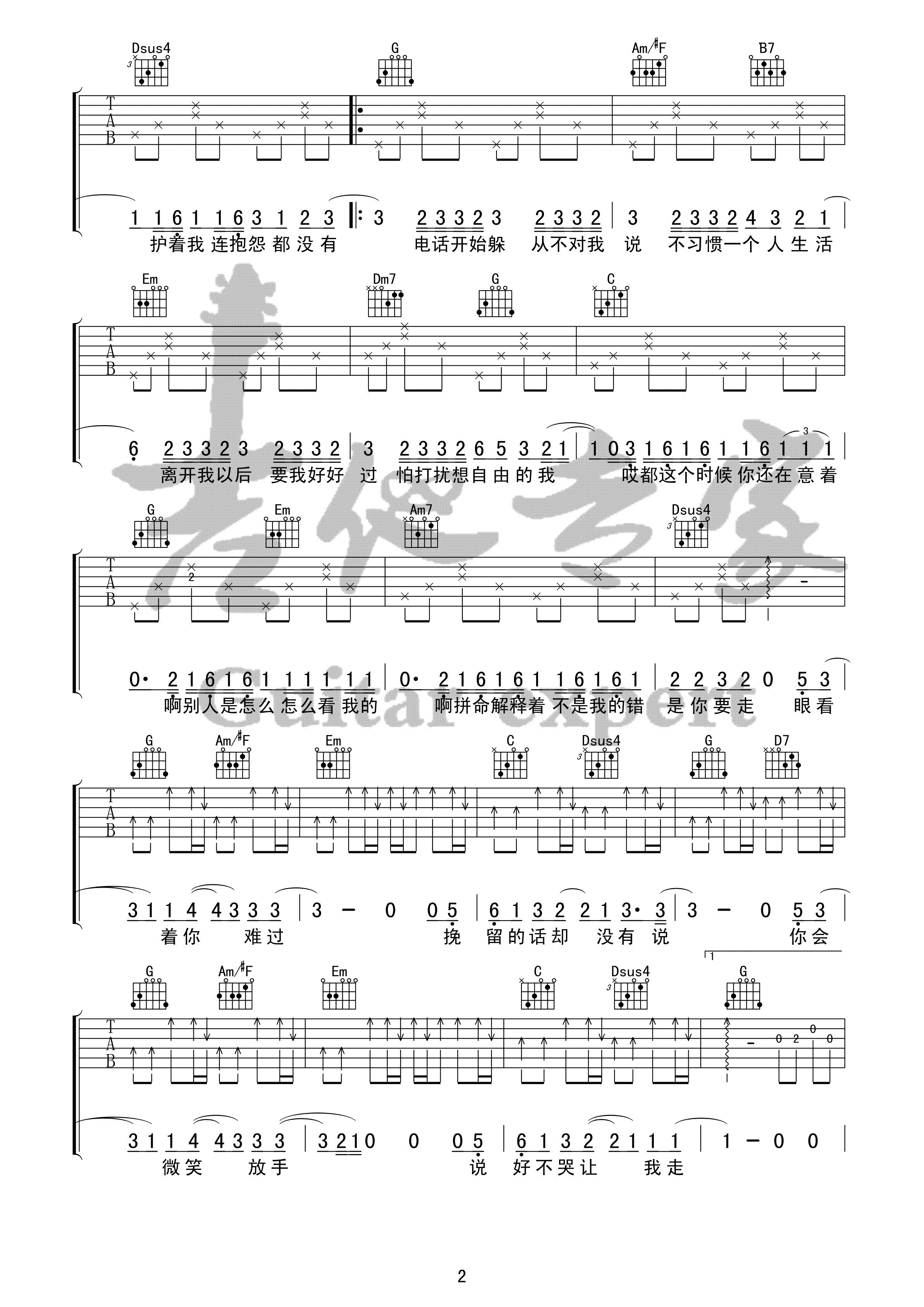 亲爱的那不是爱情 原版吉他谱