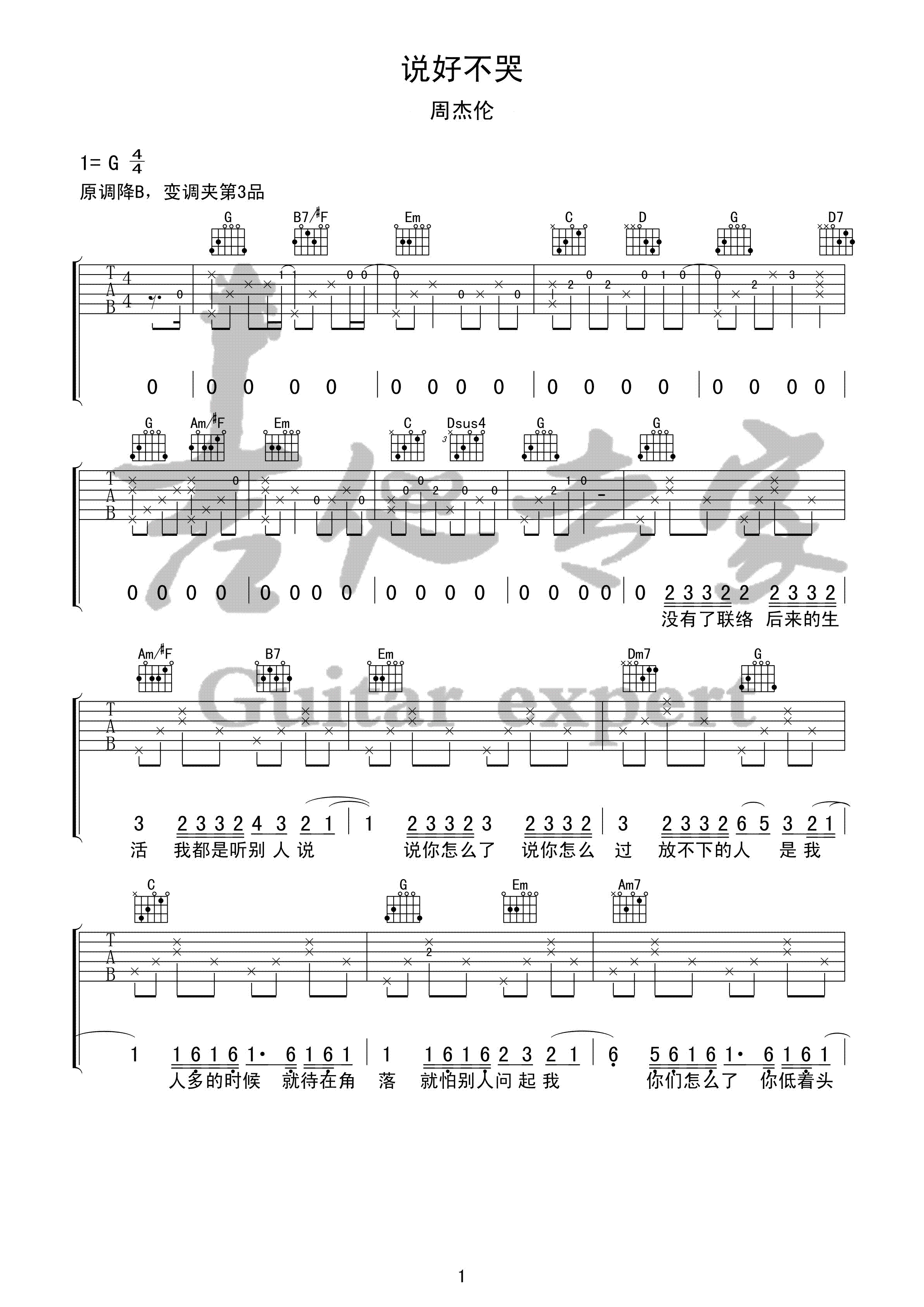 吉他谱 | 热门弹唱《说好不哭》