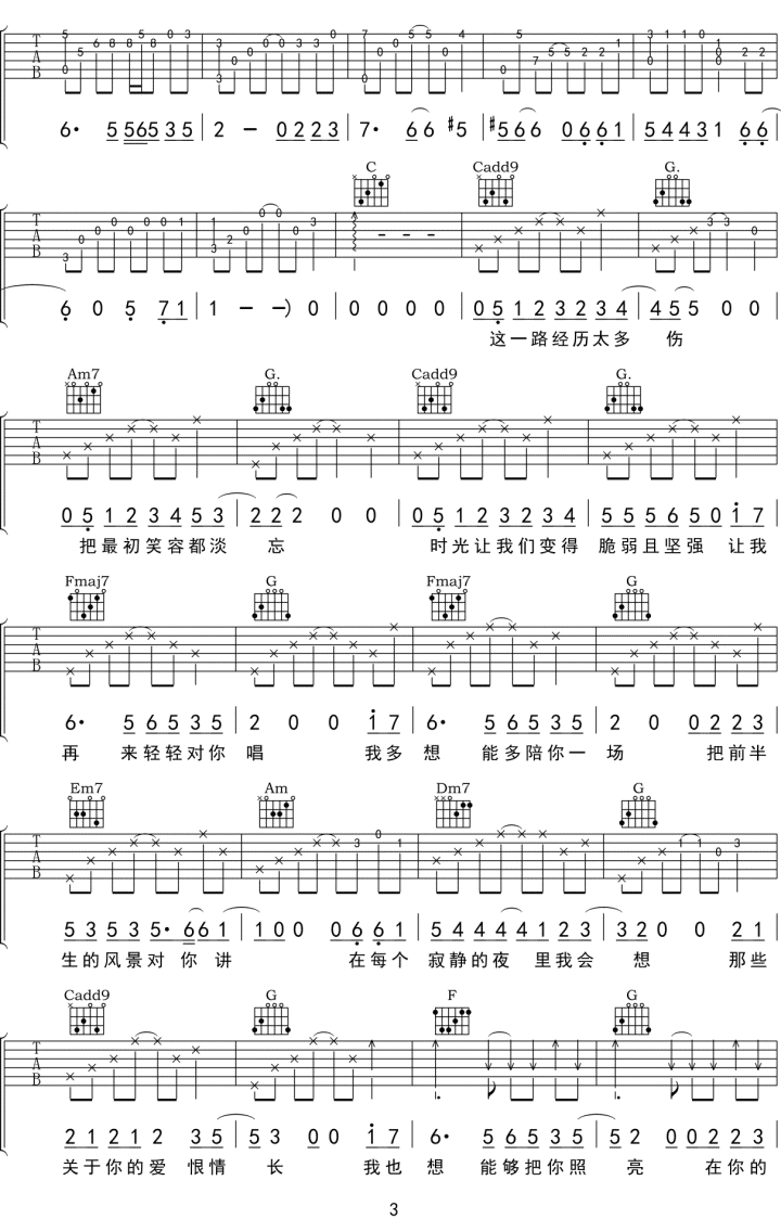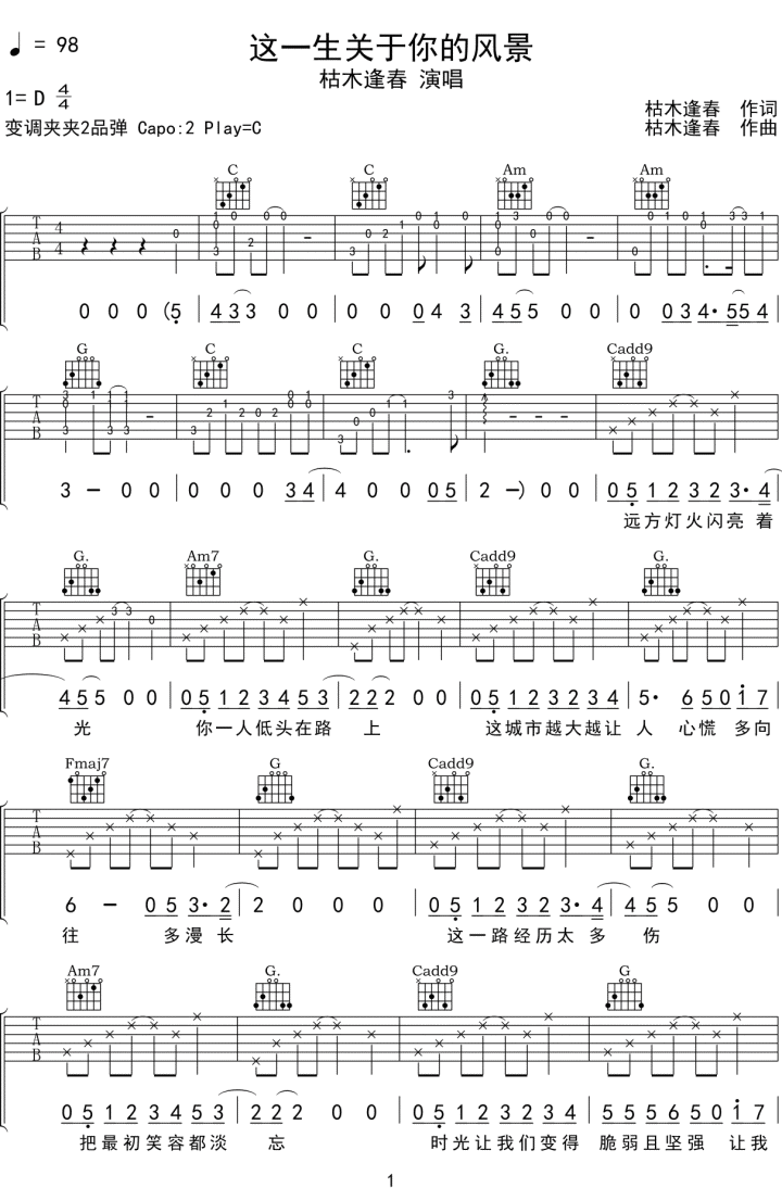吉他谱 | 热门弹唱《这一生关于你的风景》