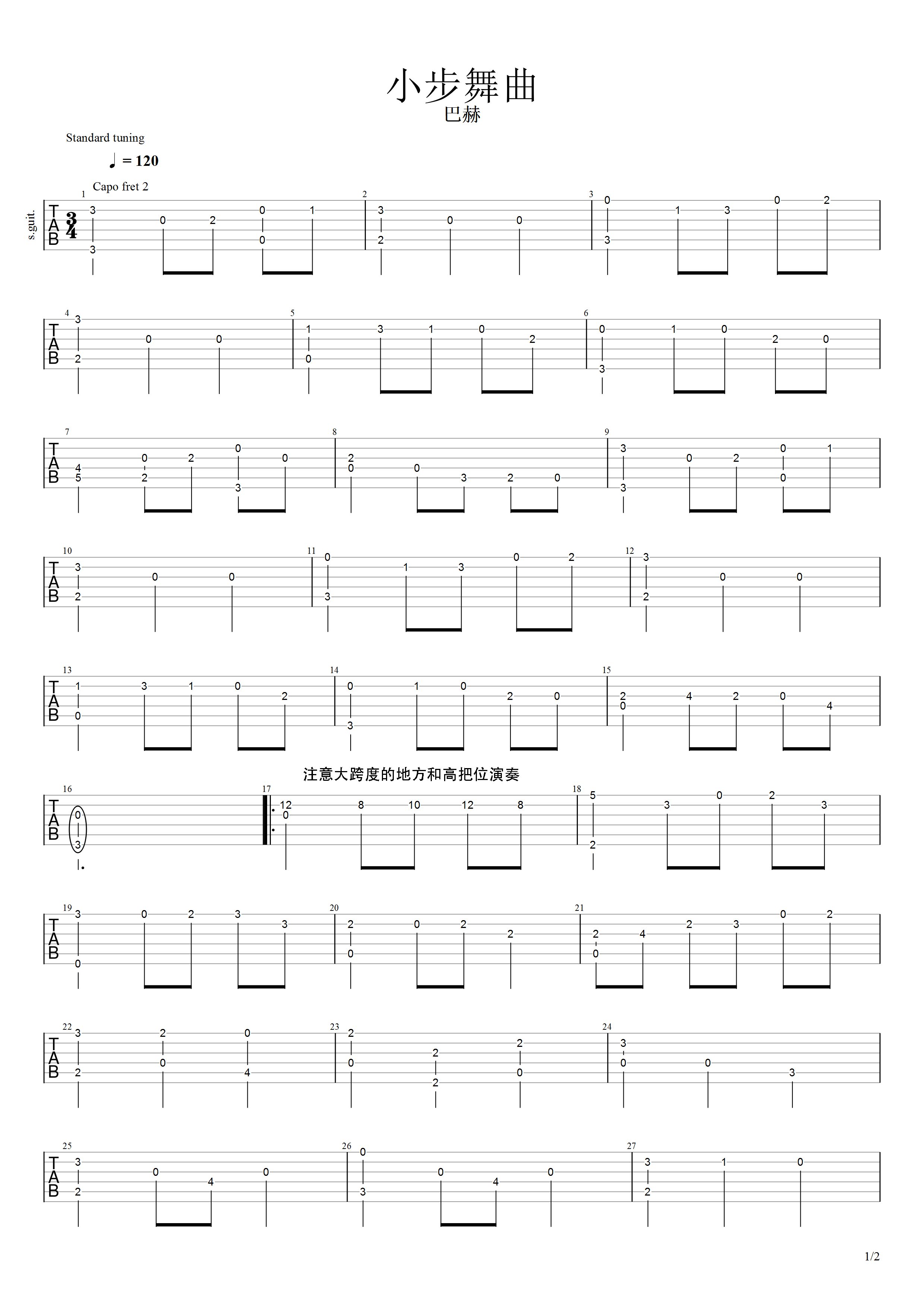 吉他谱 | 经典指弹《小步舞曲》