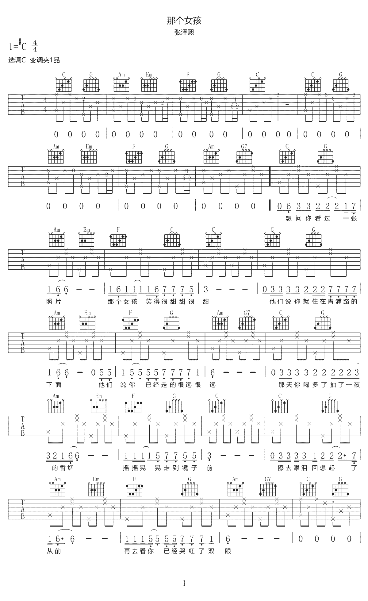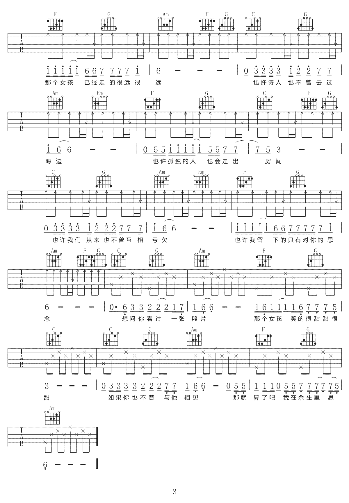 吉他谱 | 热门弹唱《那个女孩》