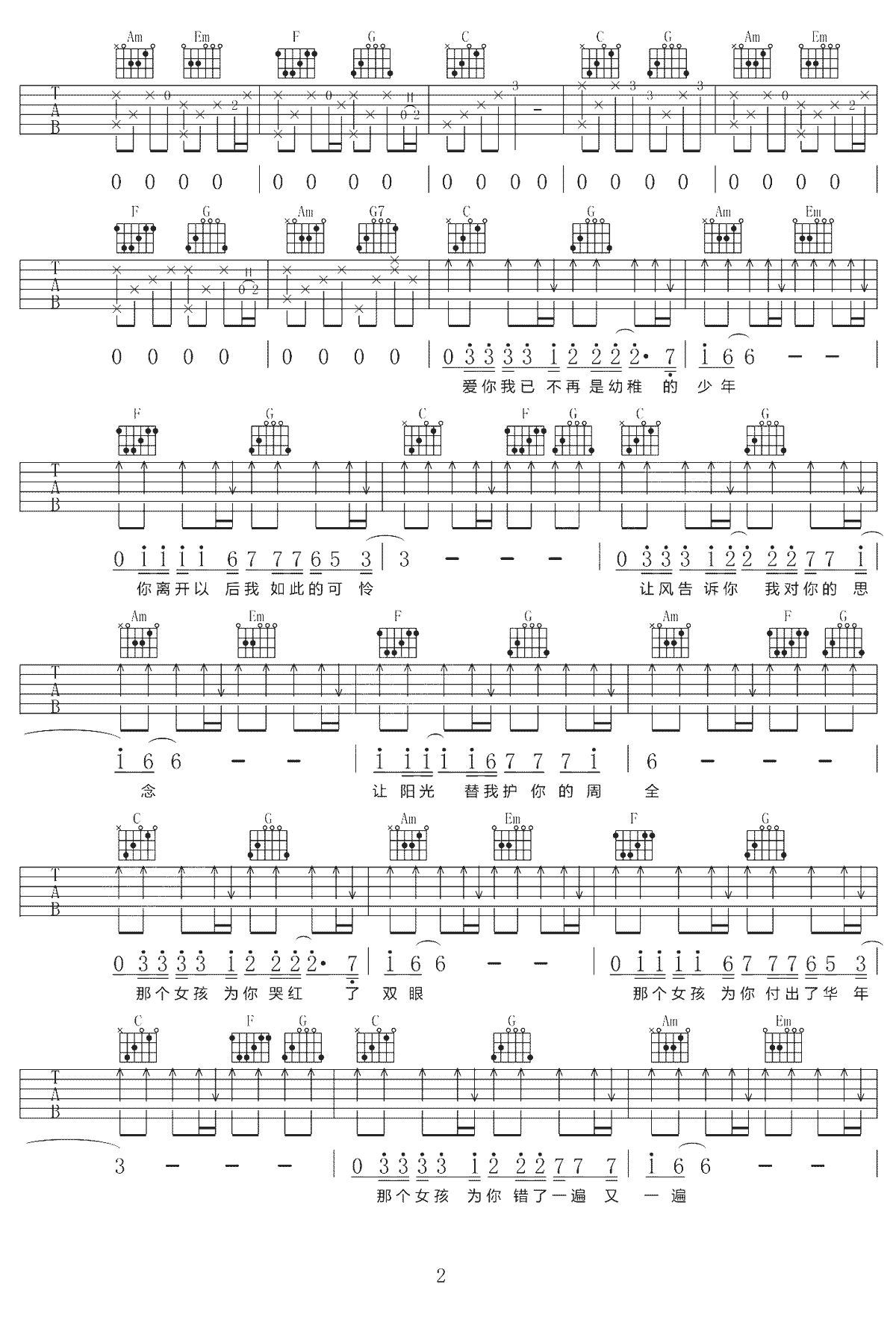 普通朋友吉他谱