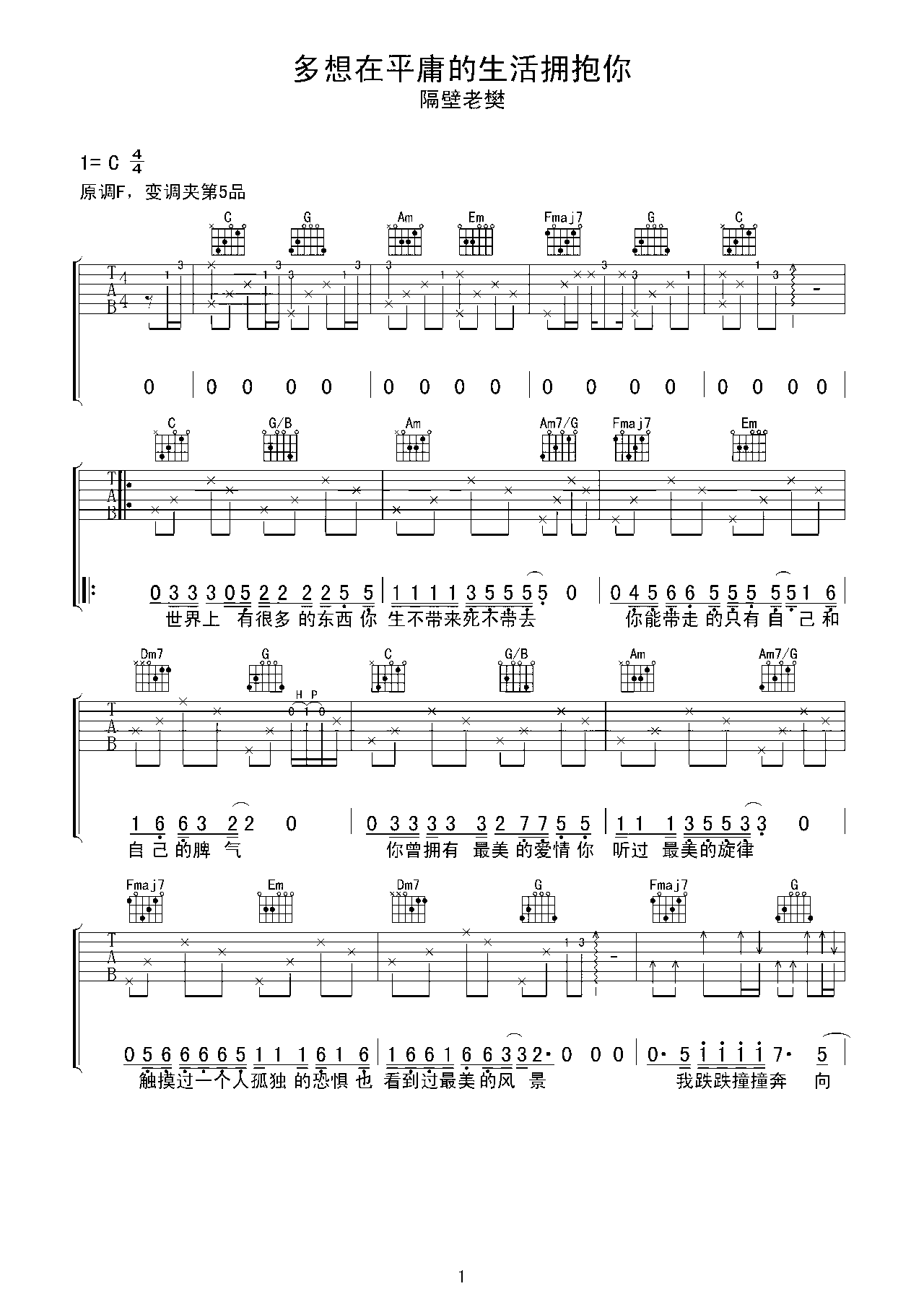 吉他谱 | 热门弹唱《多想在平庸的生活拥抱你》