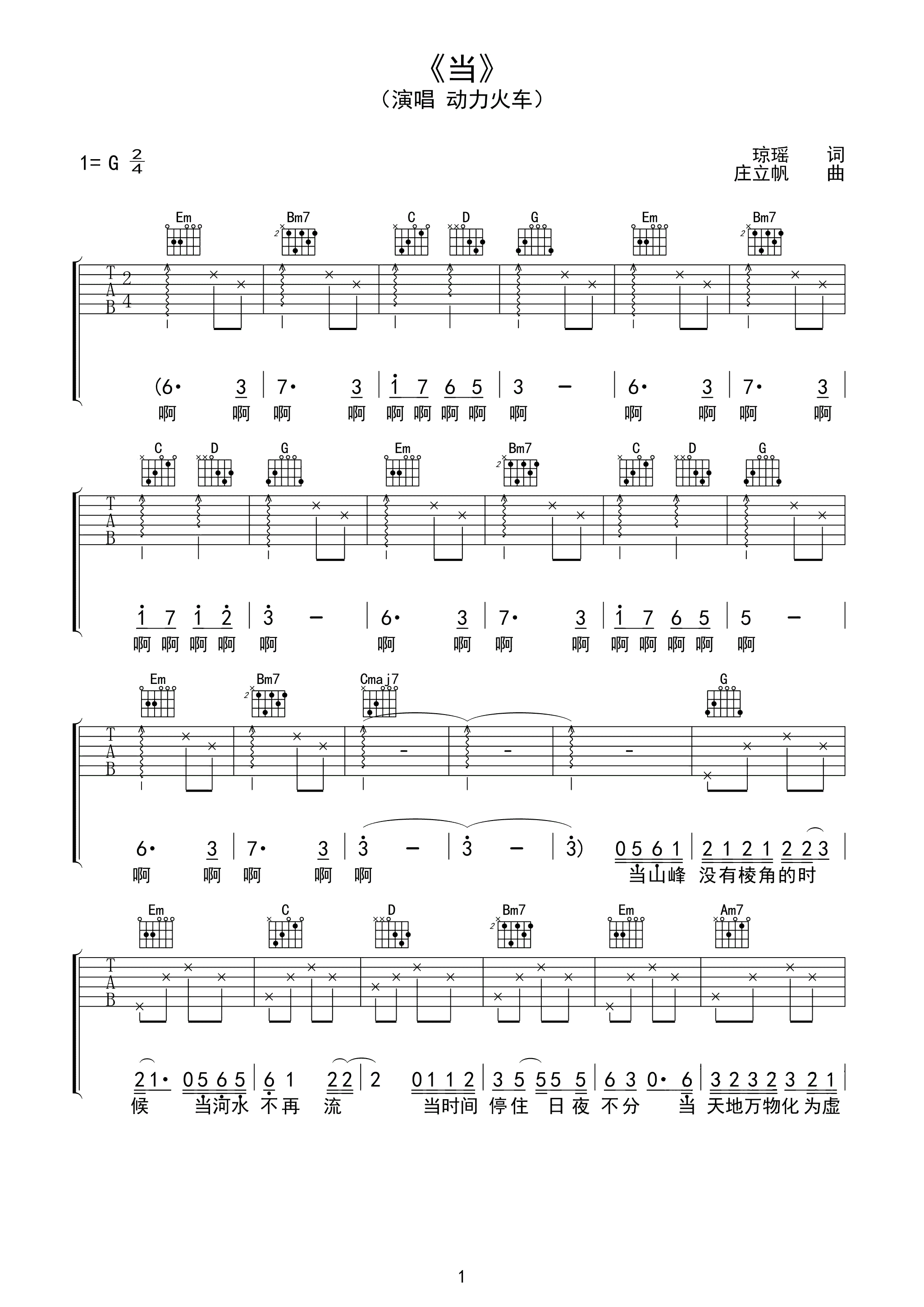 吉他谱 | 入门弹唱《让我们荡起双桨》