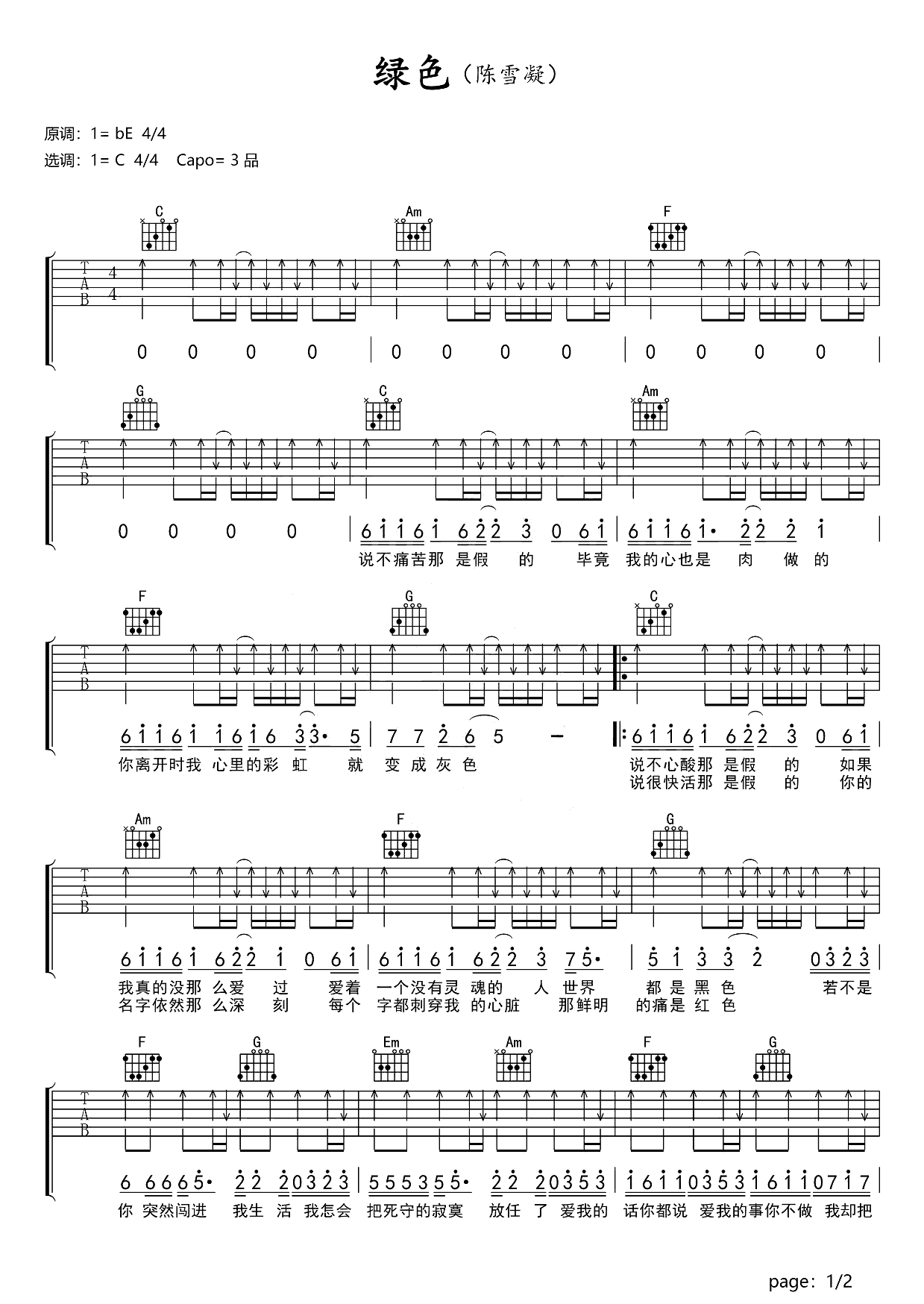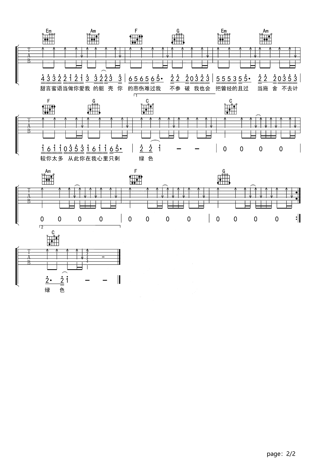 童话镇吉他谱 陈一发儿 G调指法 高清六