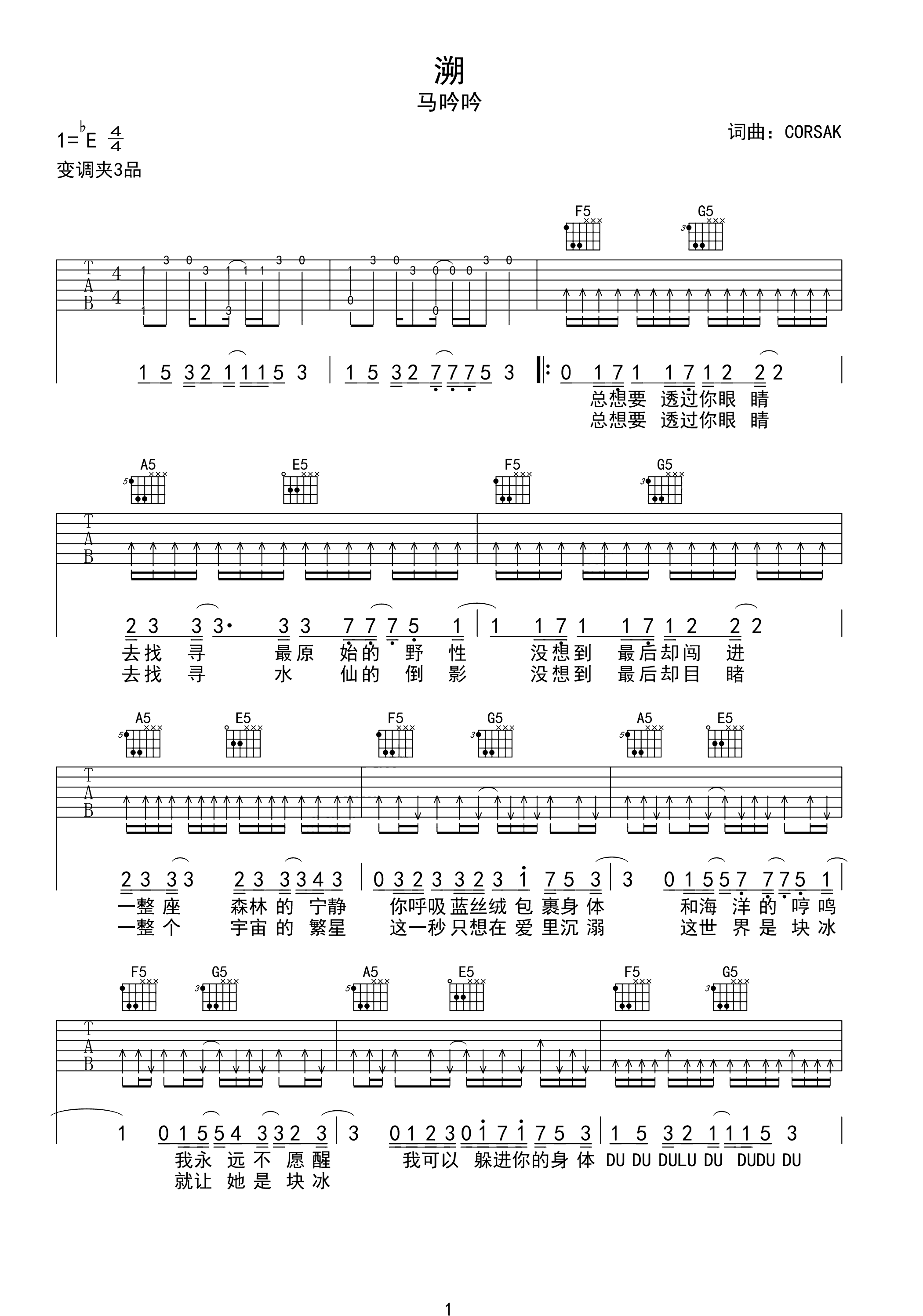 吉他谱 | 热门弹唱《溯》