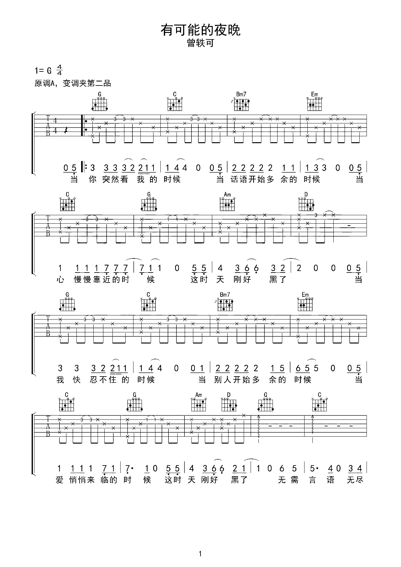 吉他谱 | 热门弹唱《有可能的夜晚》