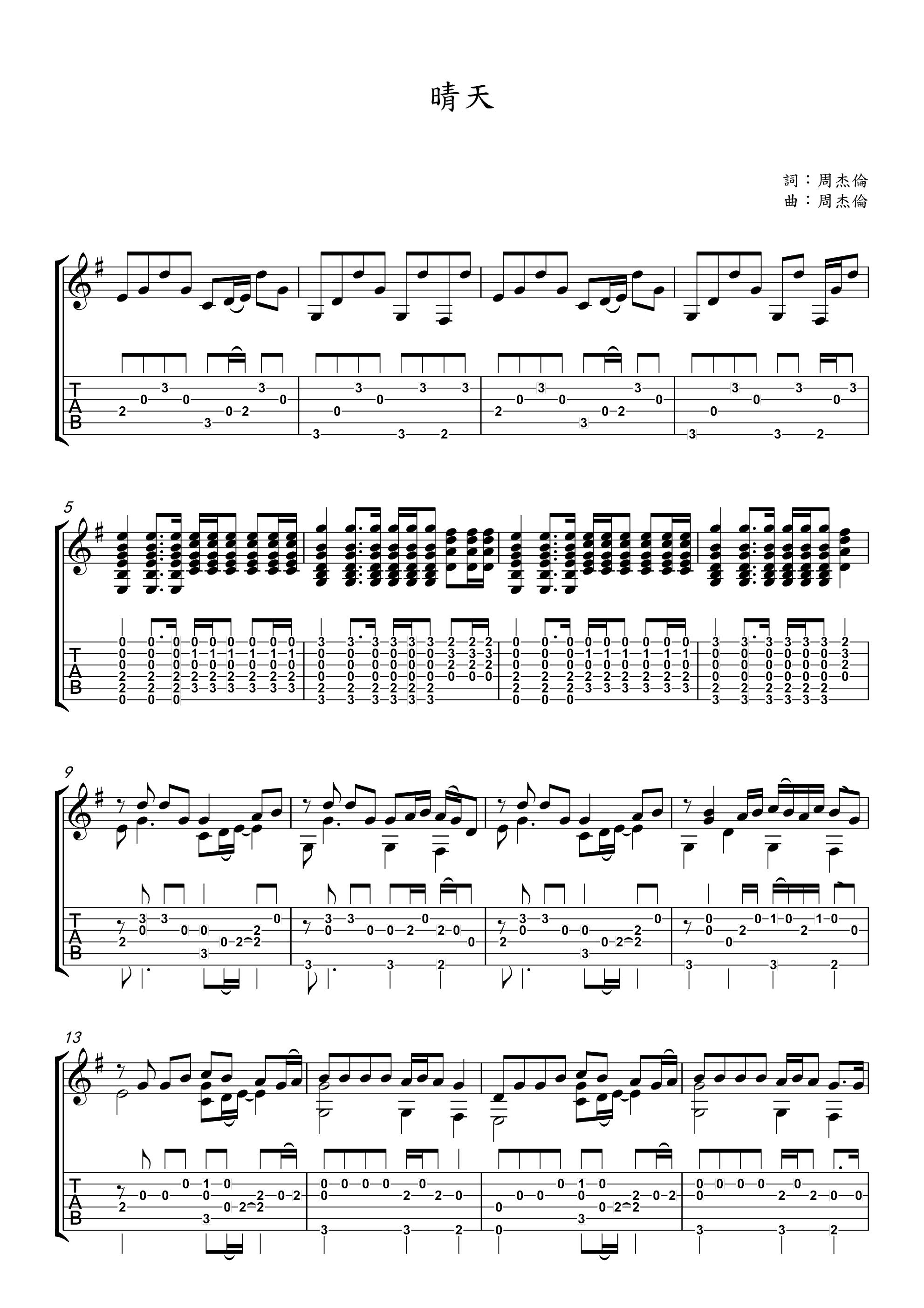 吉他谱 | 经典指弹《晴天》