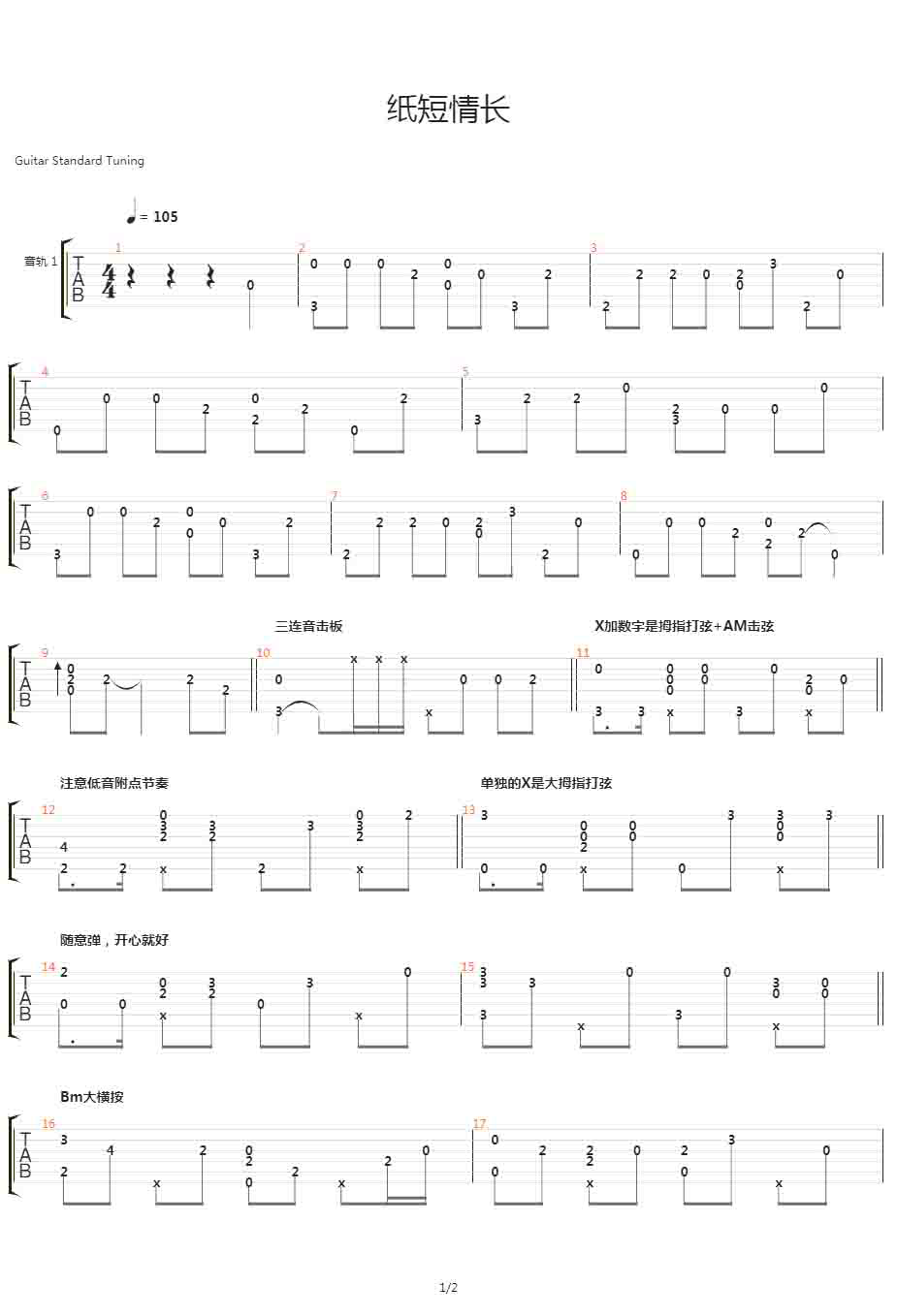 命中注定(指弹独奏完美自制图片谱)吉他谱