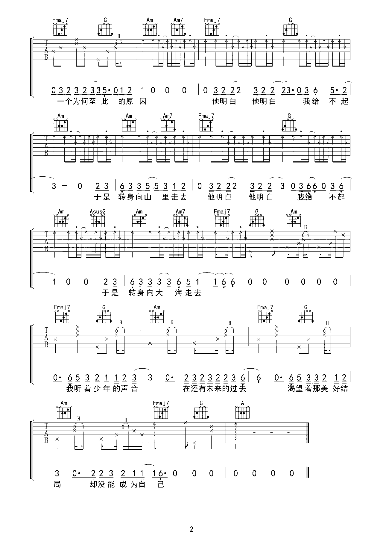 平凡之路吉他谱 朴树 G调六线谱高清版