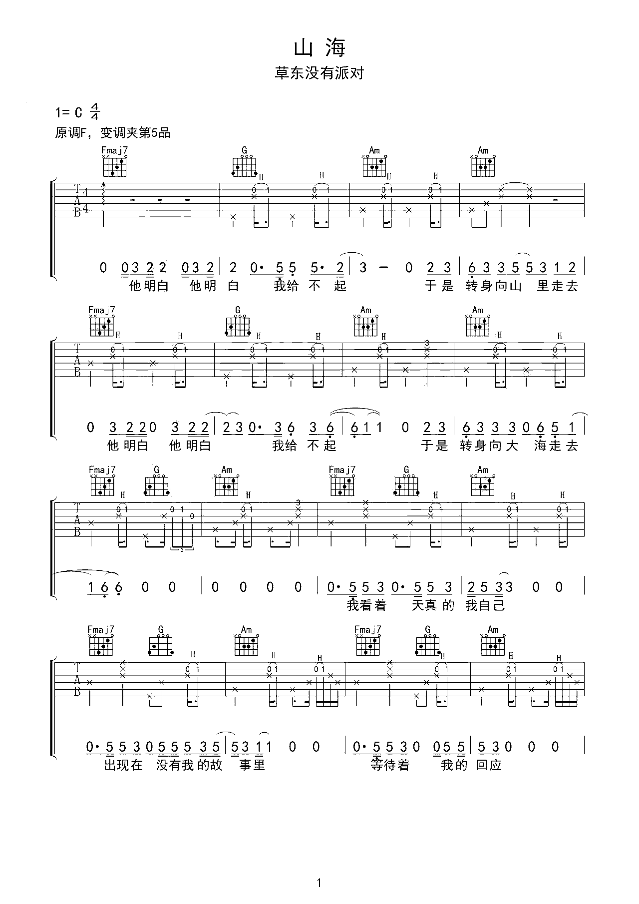 吉他谱 | 热门弹唱《山海》