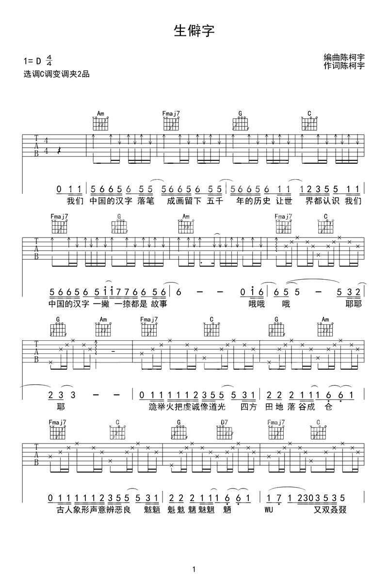 玫瑰吉他谱_贰佰_C调六线谱_高清弹唱谱