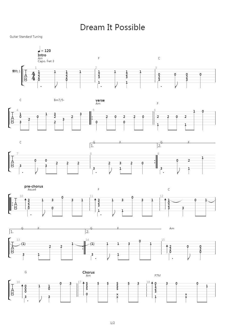 吉他谱 | 经典指弹《Dream It Possible》