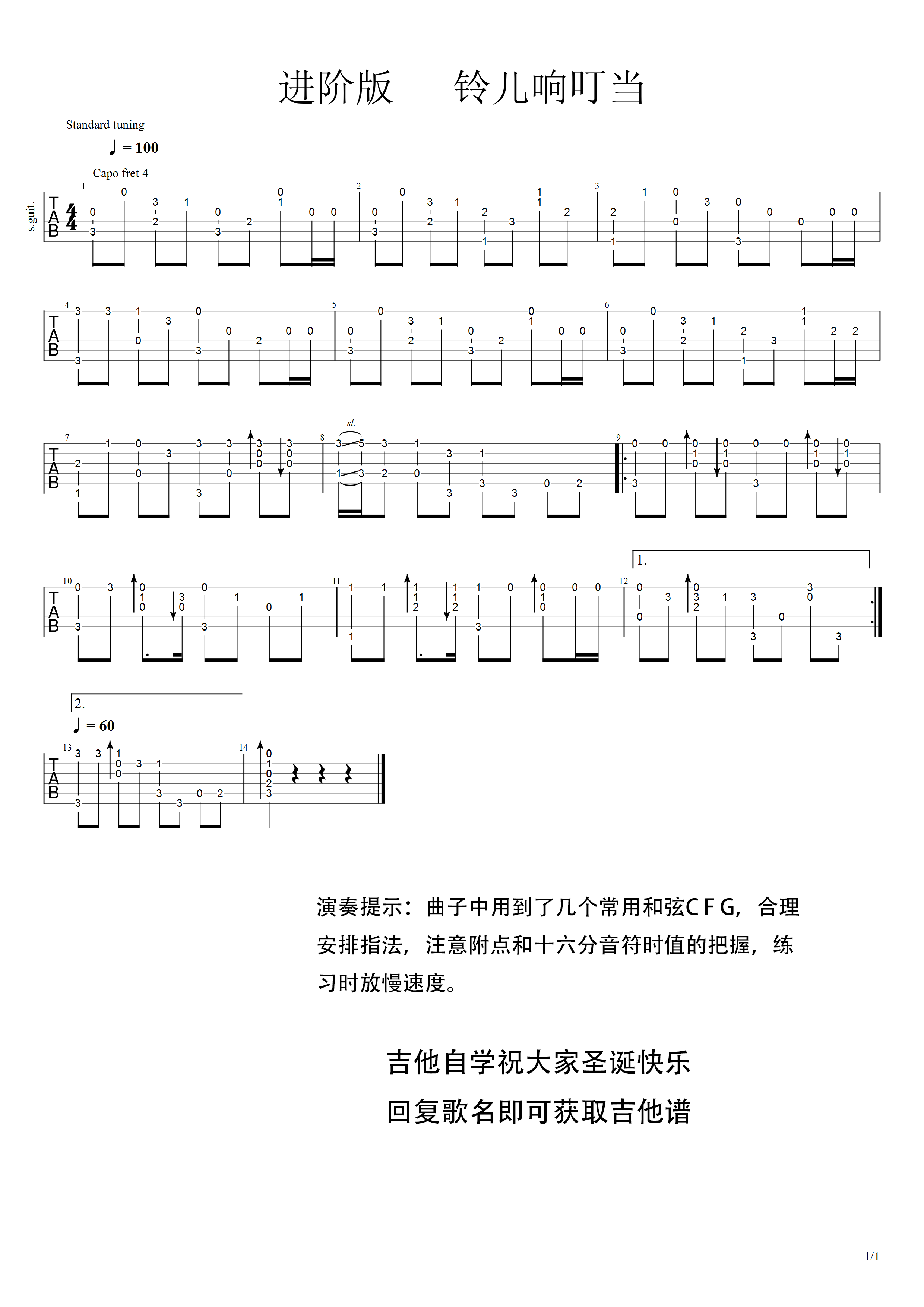 吉他谱 | 经典指弹《铃儿响叮当》
