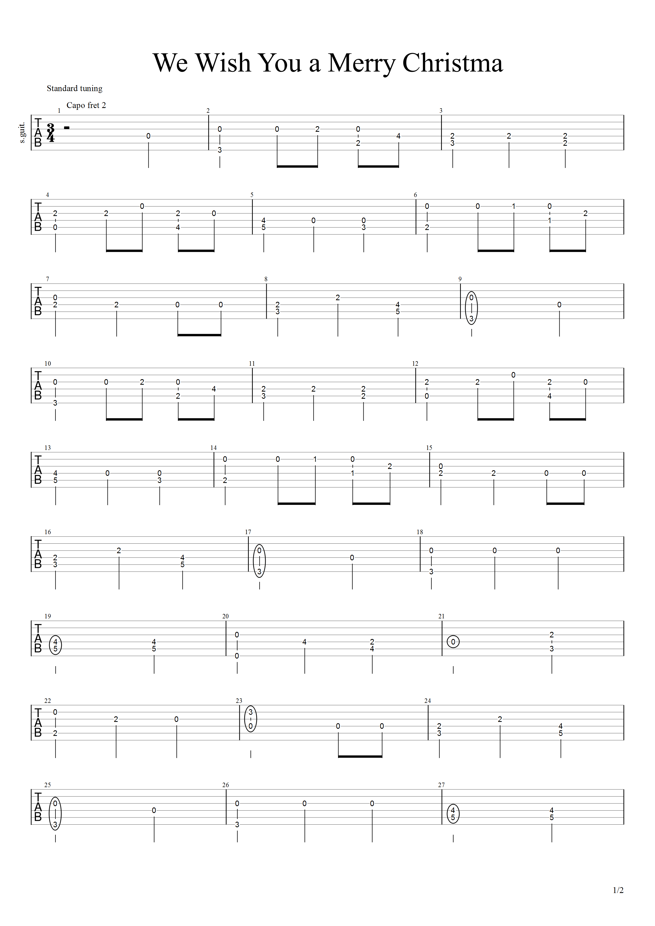 吉他谱 | 经典指弹《We Wish You a Merry Christma》