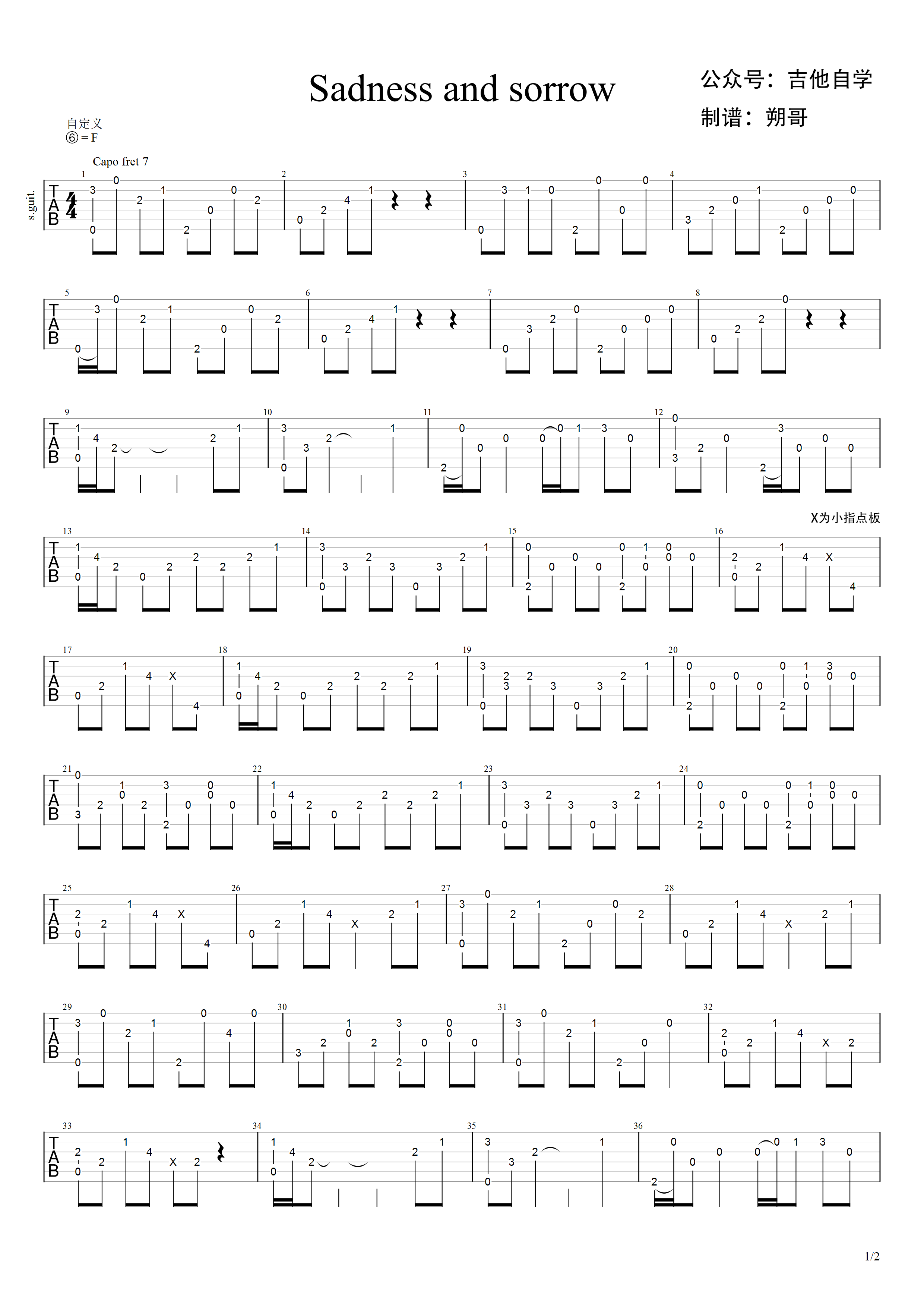 吉他谱 | 经典指弹《Sadness and sorrow》