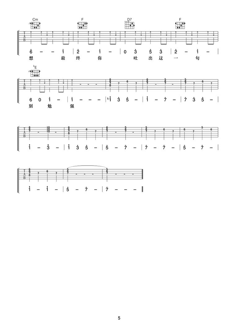 不说再见吉他谱 许飞女生版 弹唱谱 谁