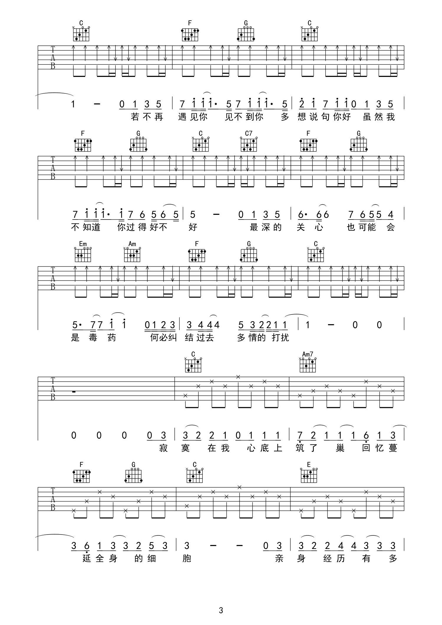 不开的唇吉他谱 赵雷 弹唱图片谱 果木