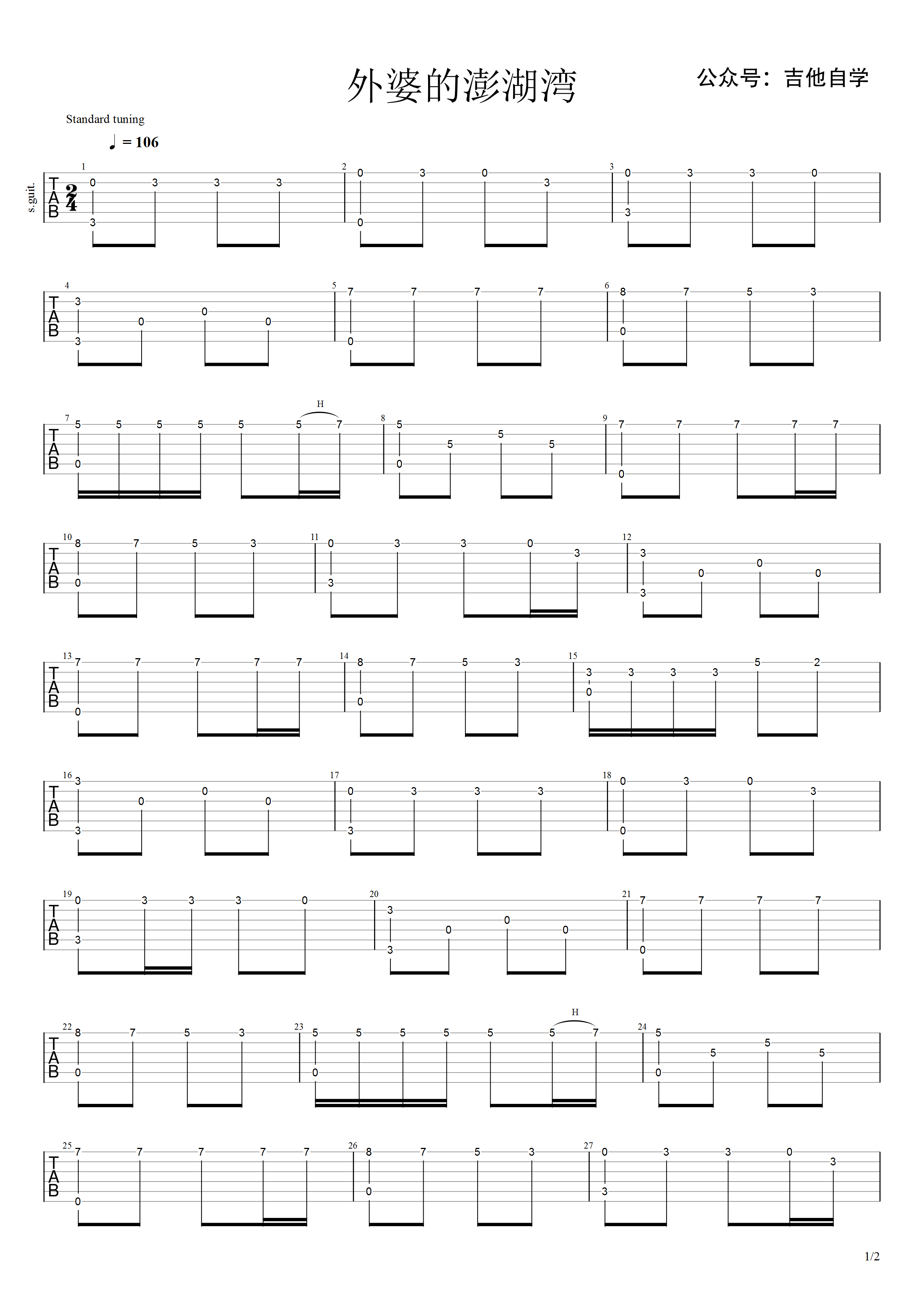 吉他谱 | 经典指弹《外婆的澎湖湾》