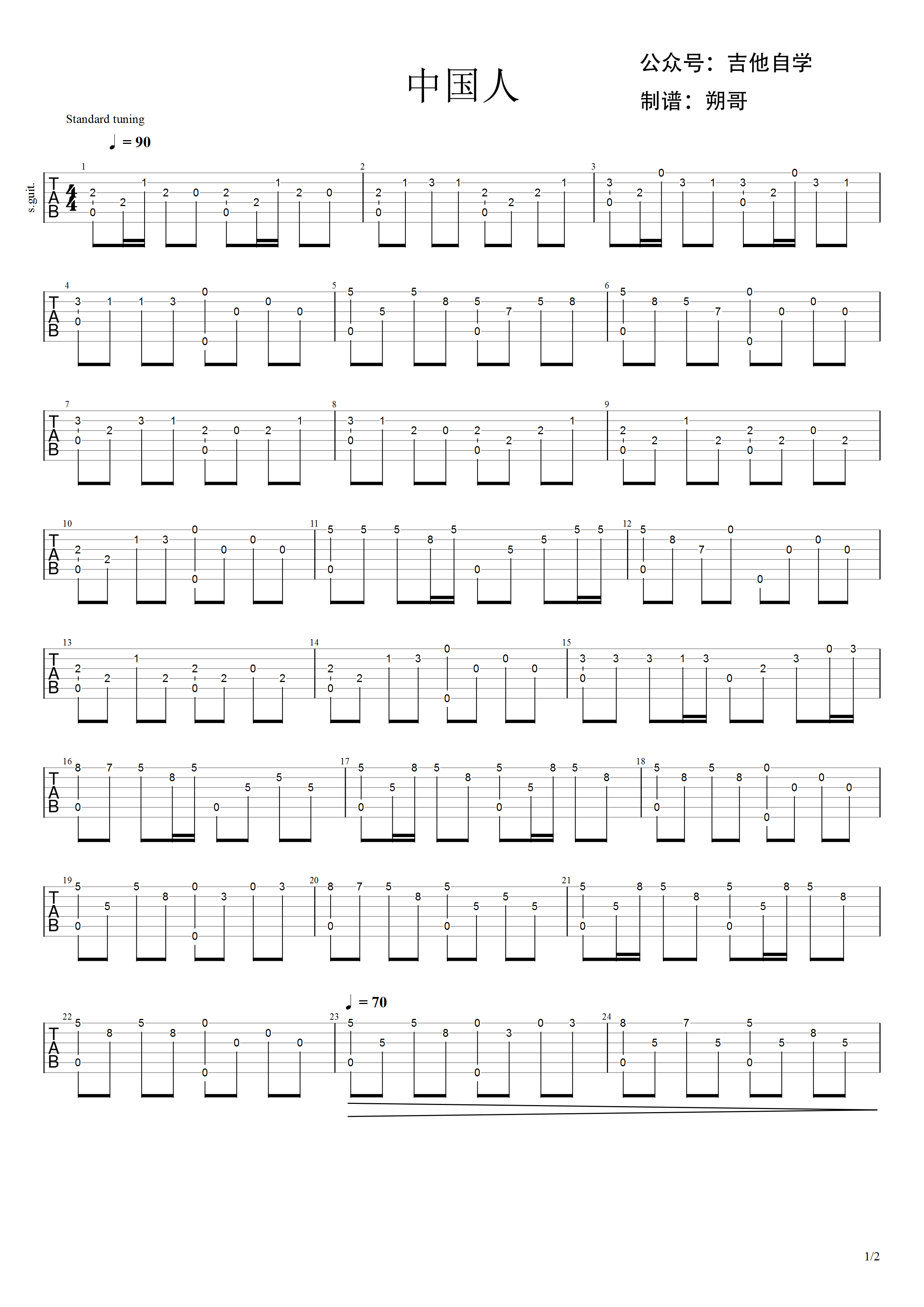 吉他谱 | 经典指弹《中国人》