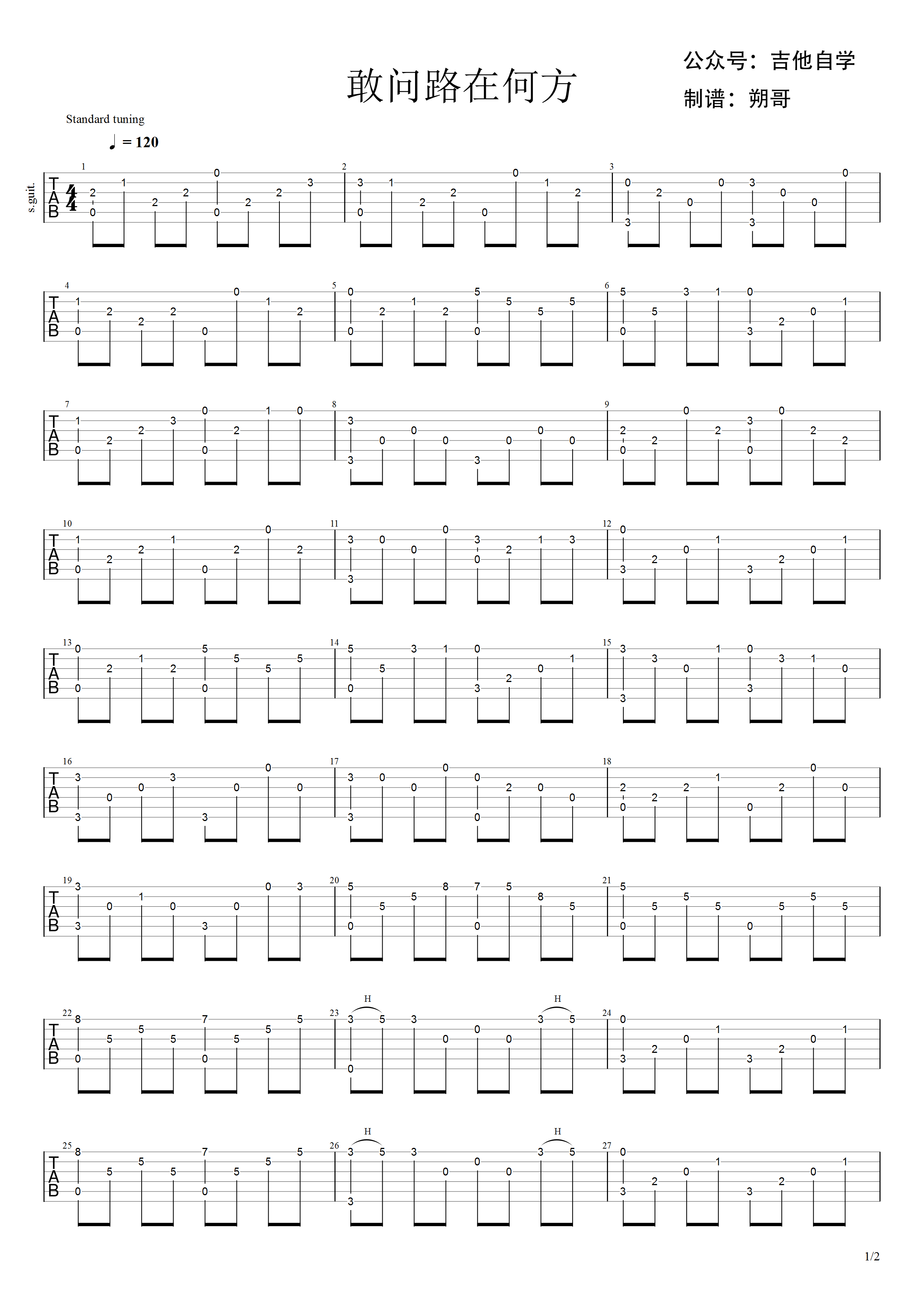 吉他谱 | 经典指弹《敢问路在何方》