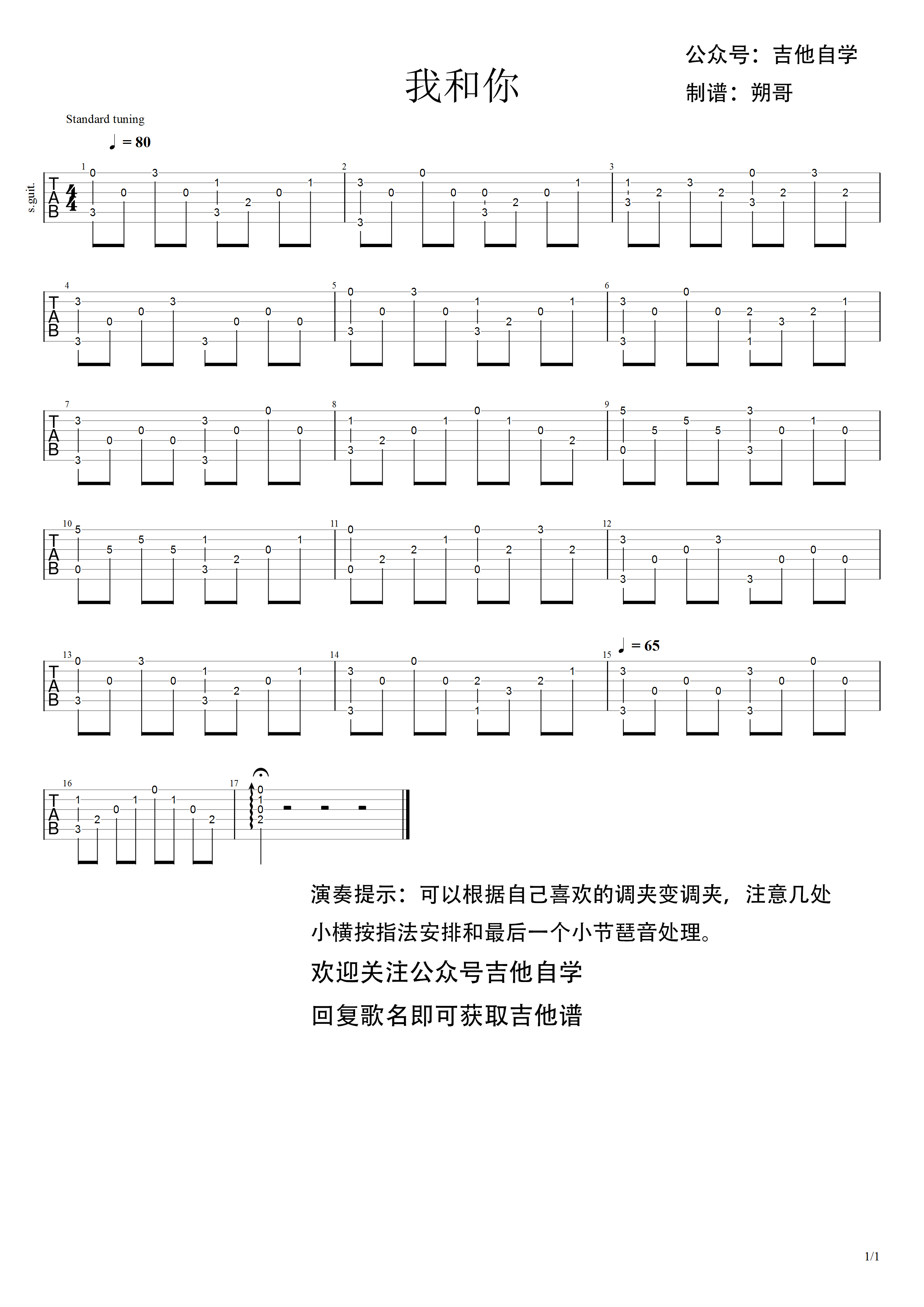吉他谱 | 经典指弹《我和你》