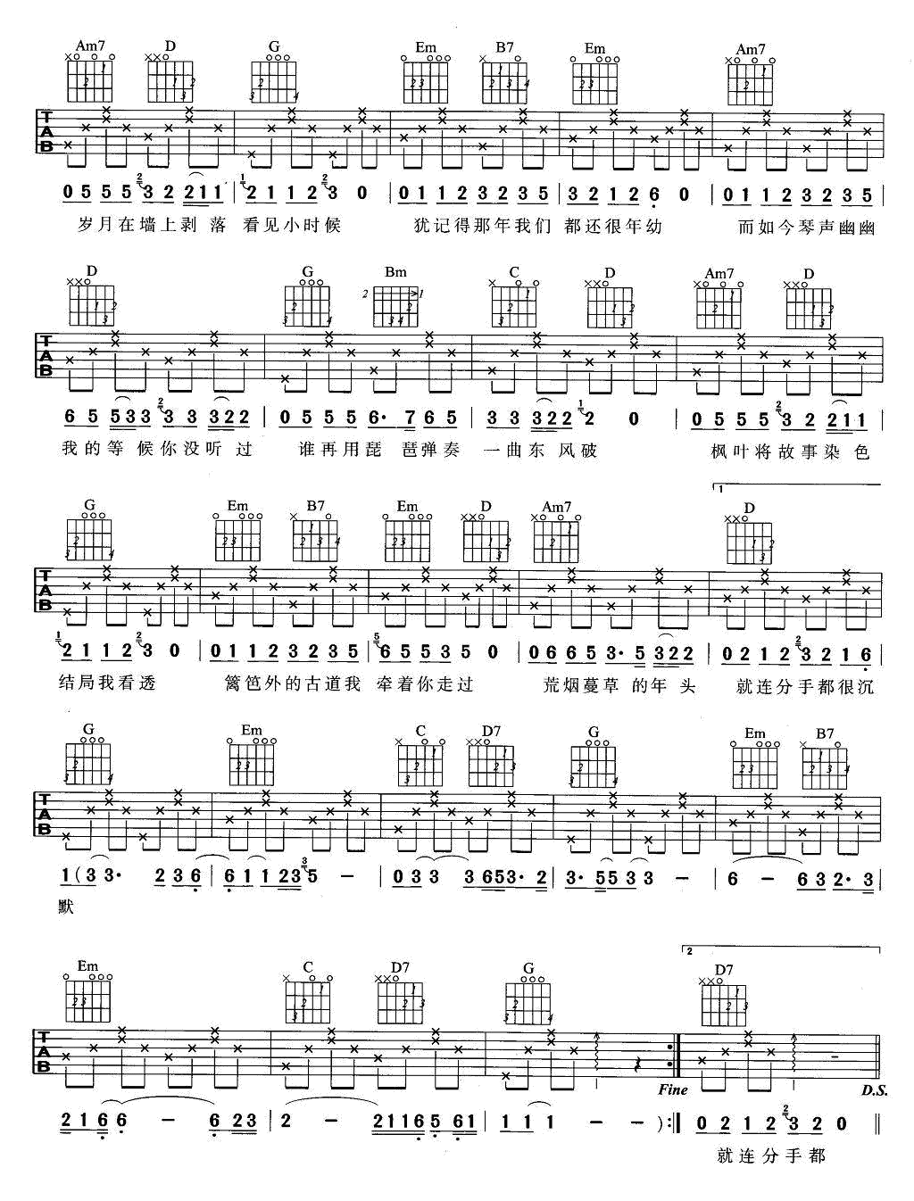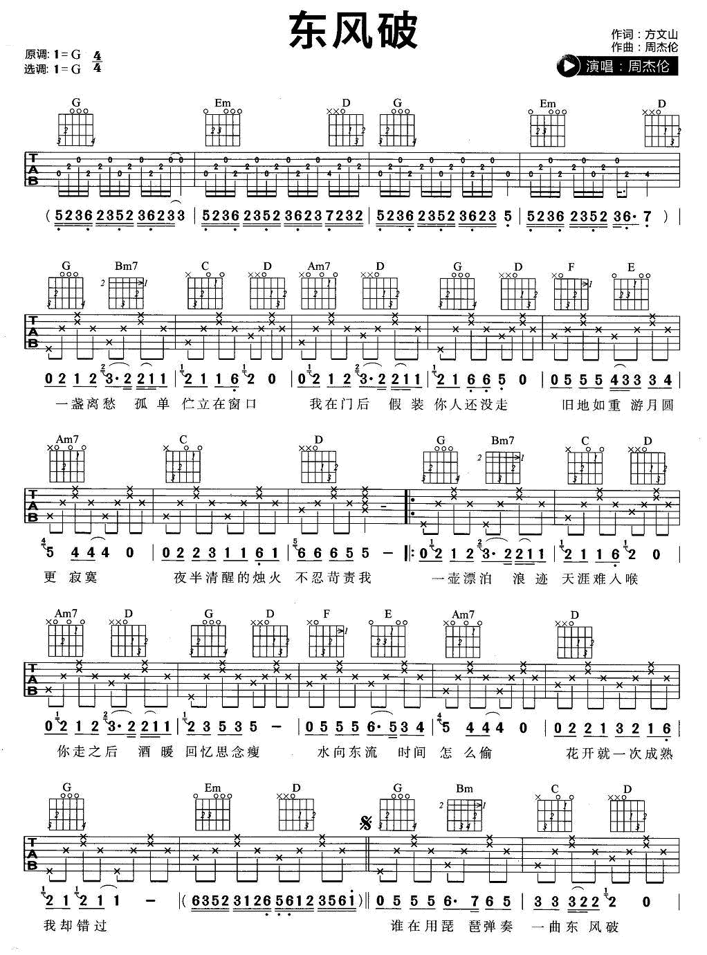 吉他谱 | 热门弹唱《东风破》