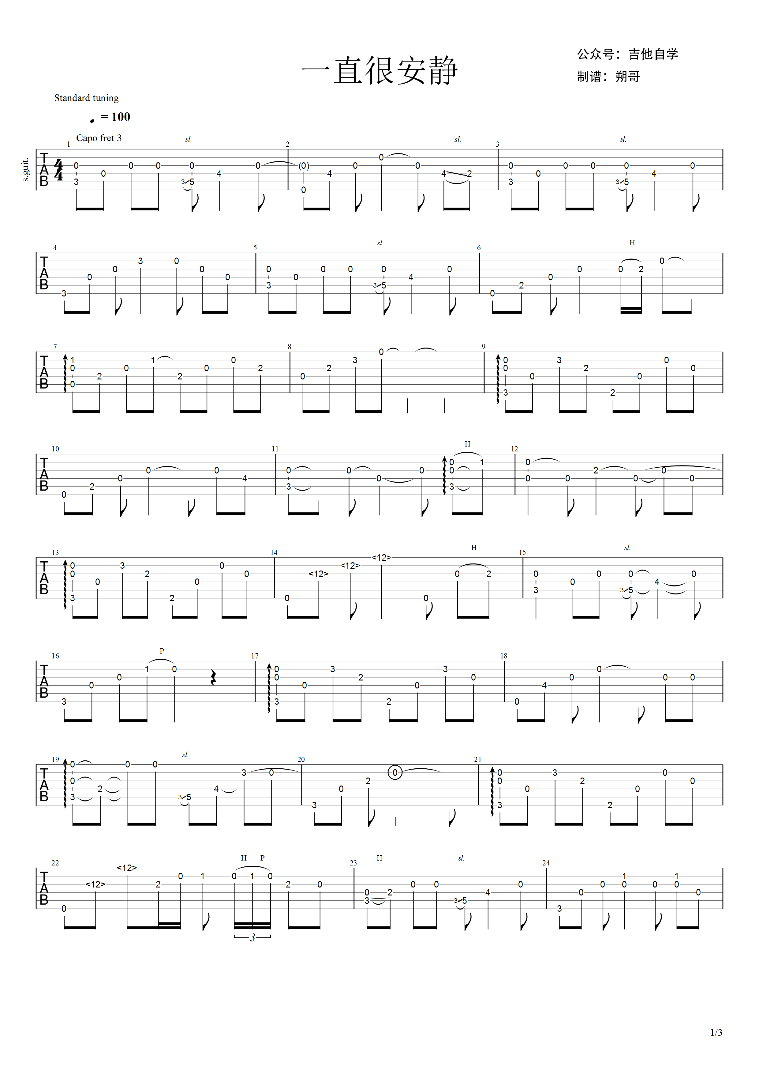 吉他谱 | 经典指弹《一直很安静》
