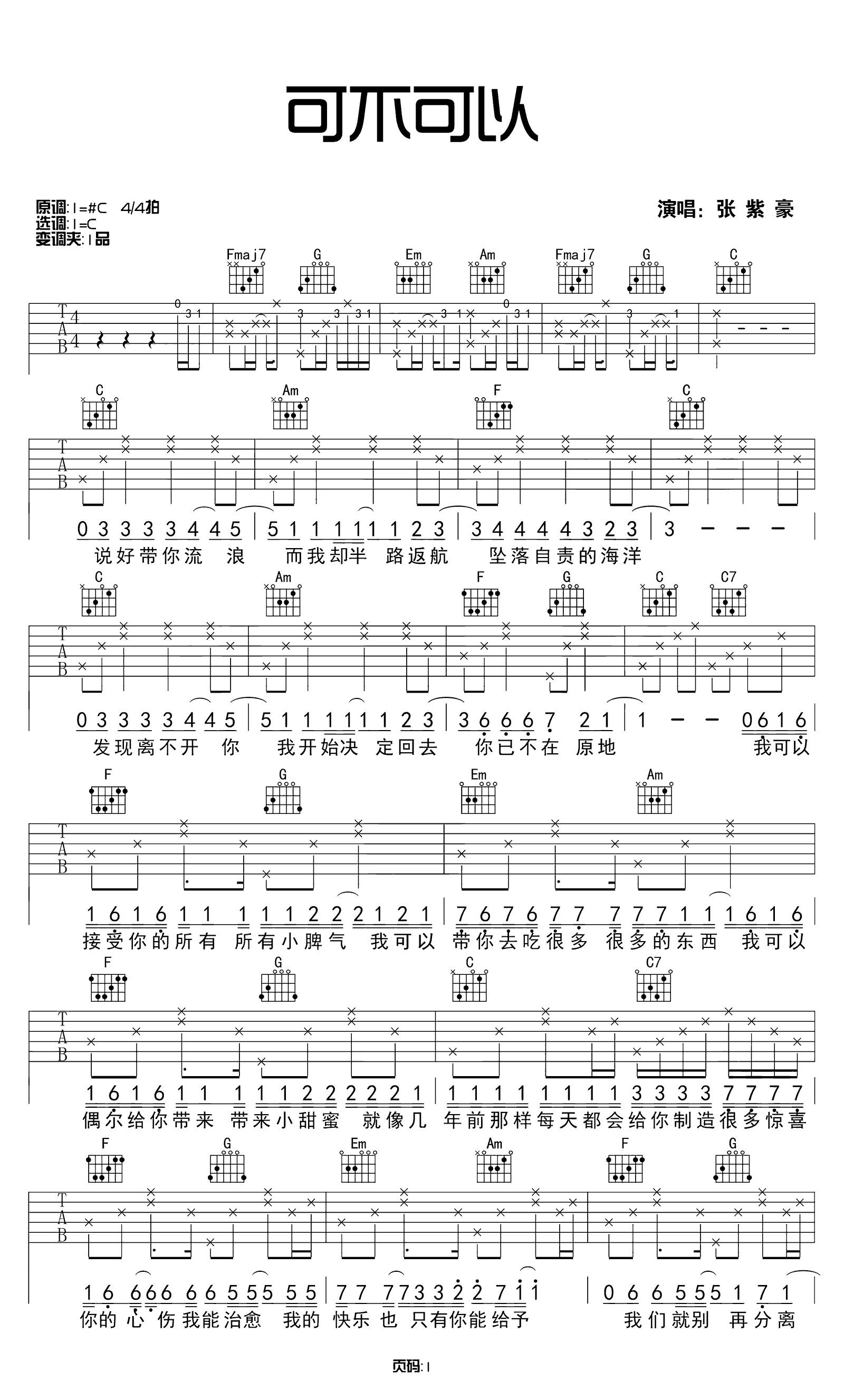 晴天指弹谱_周杰伦_简单版_《晴天》指