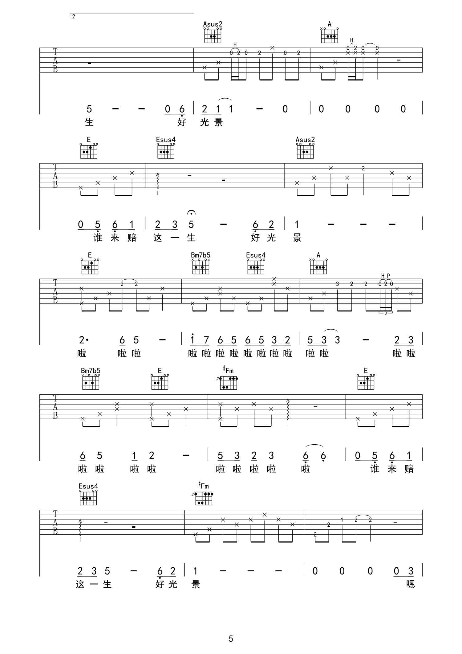 无所谓 (杨坤)吉他谱