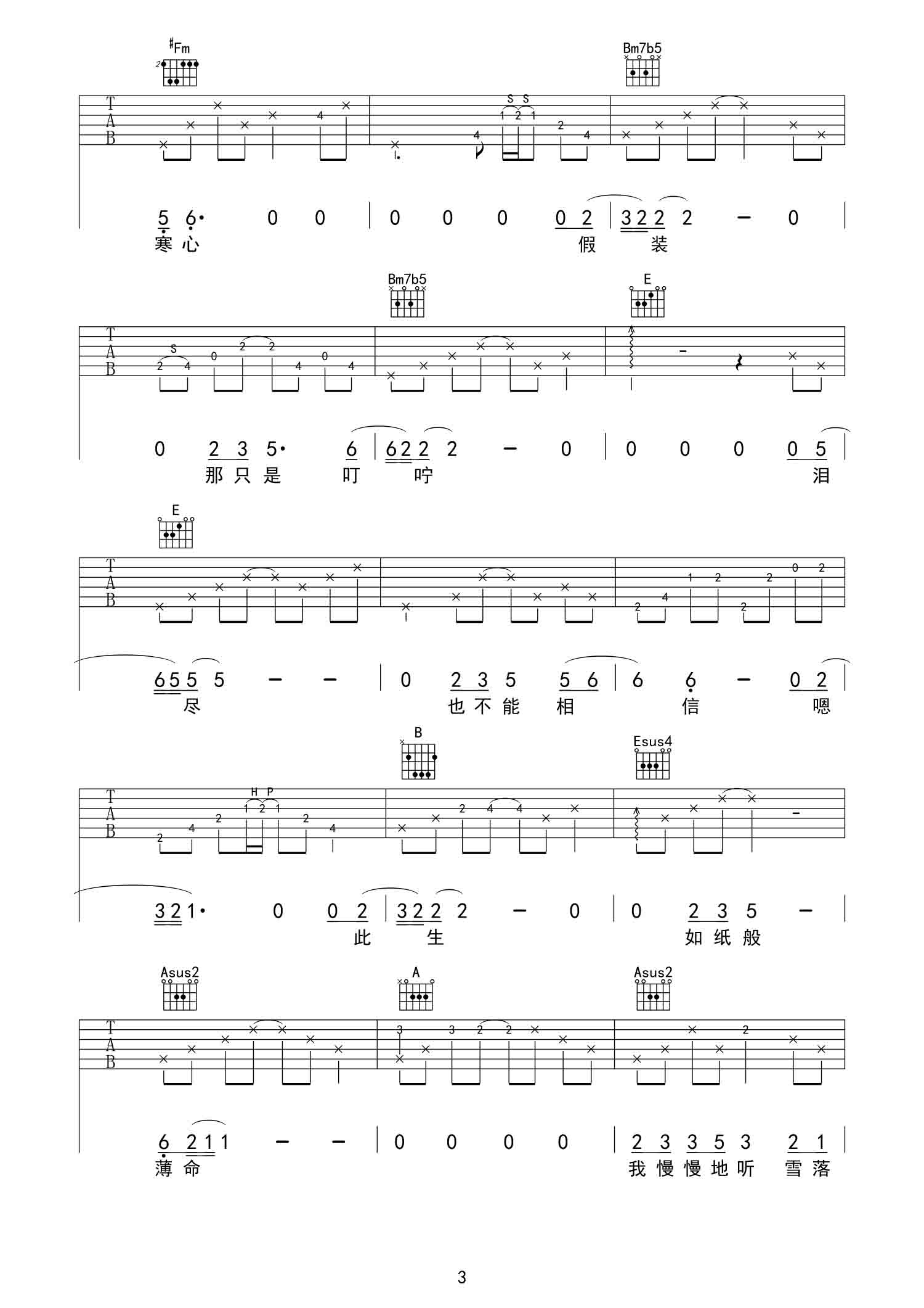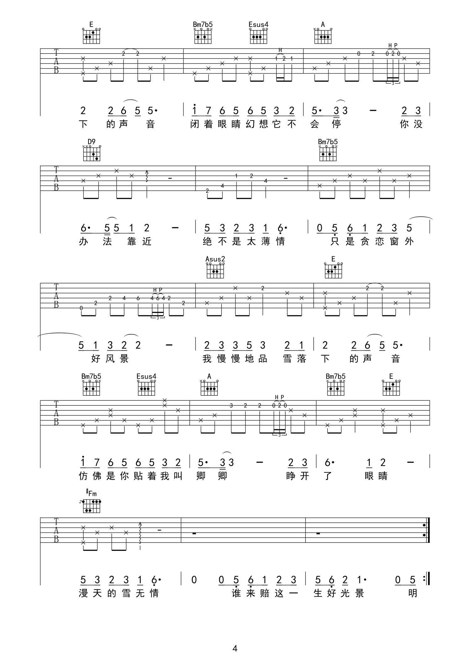 吉他谱 | 热门弹唱《雪落下的声音》