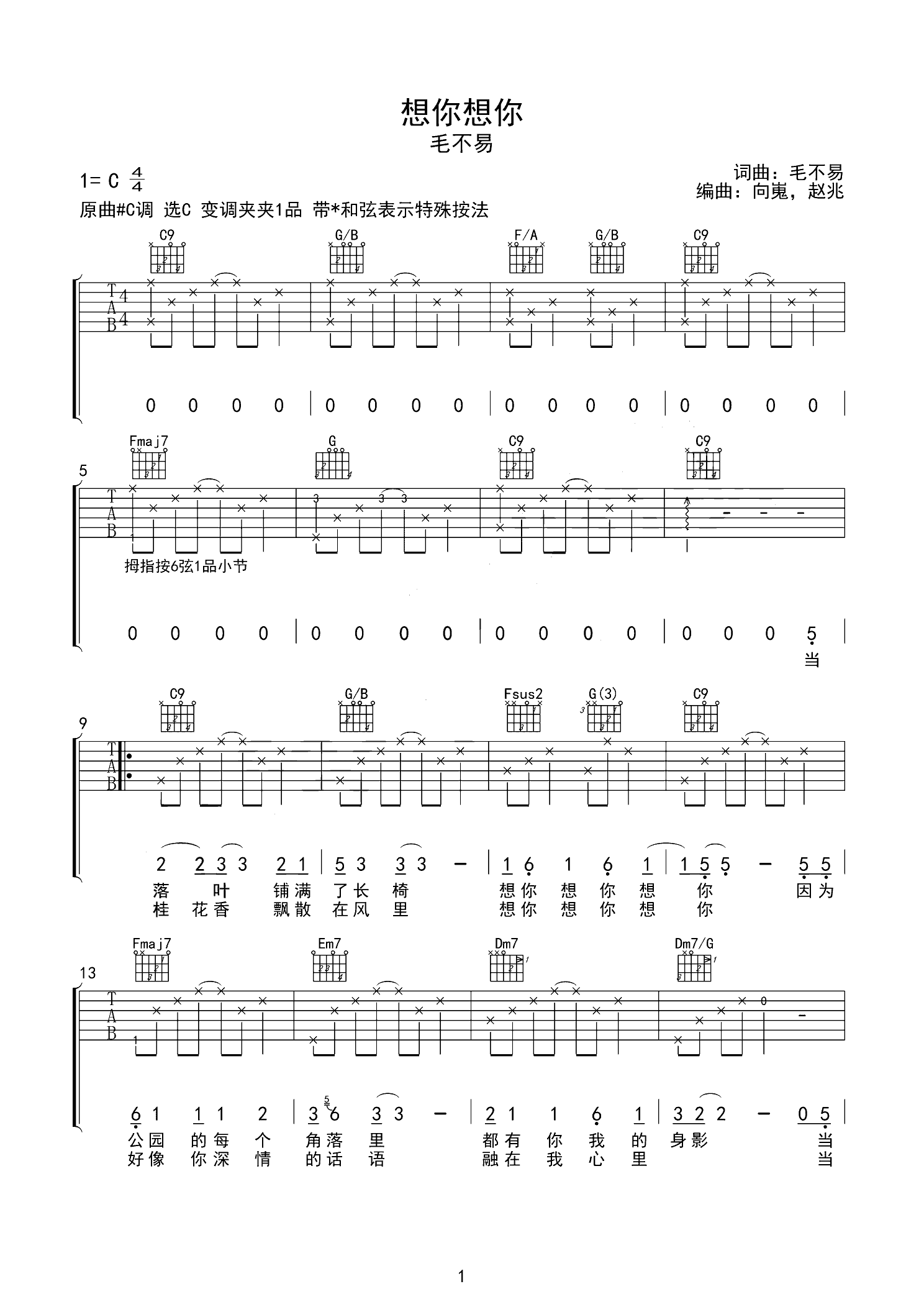 我要你指弹谱_任素汐_吉他独奏谱_驴得