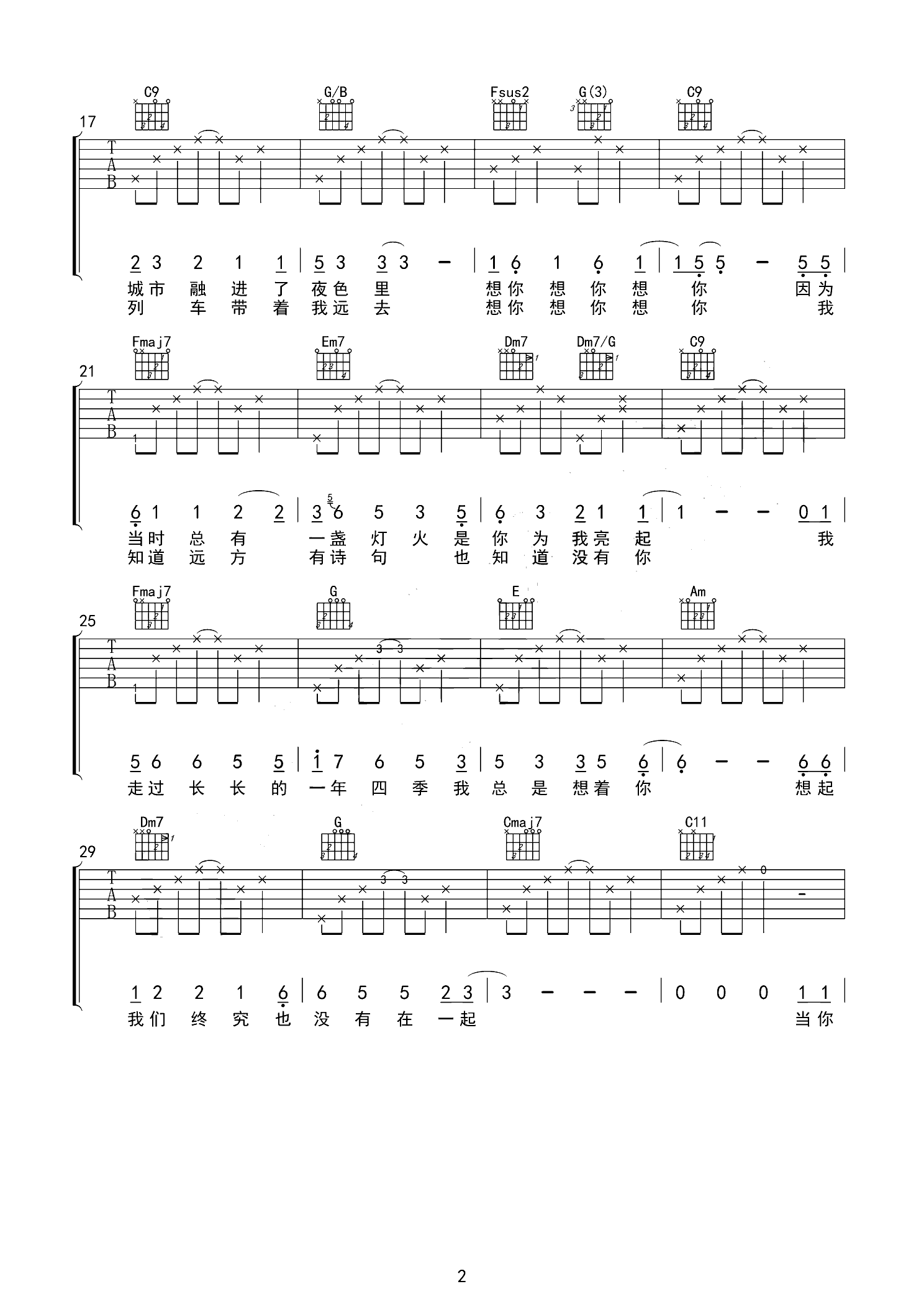 故乡吉他谱_许巍_G调原版_吉他弹唱谱_