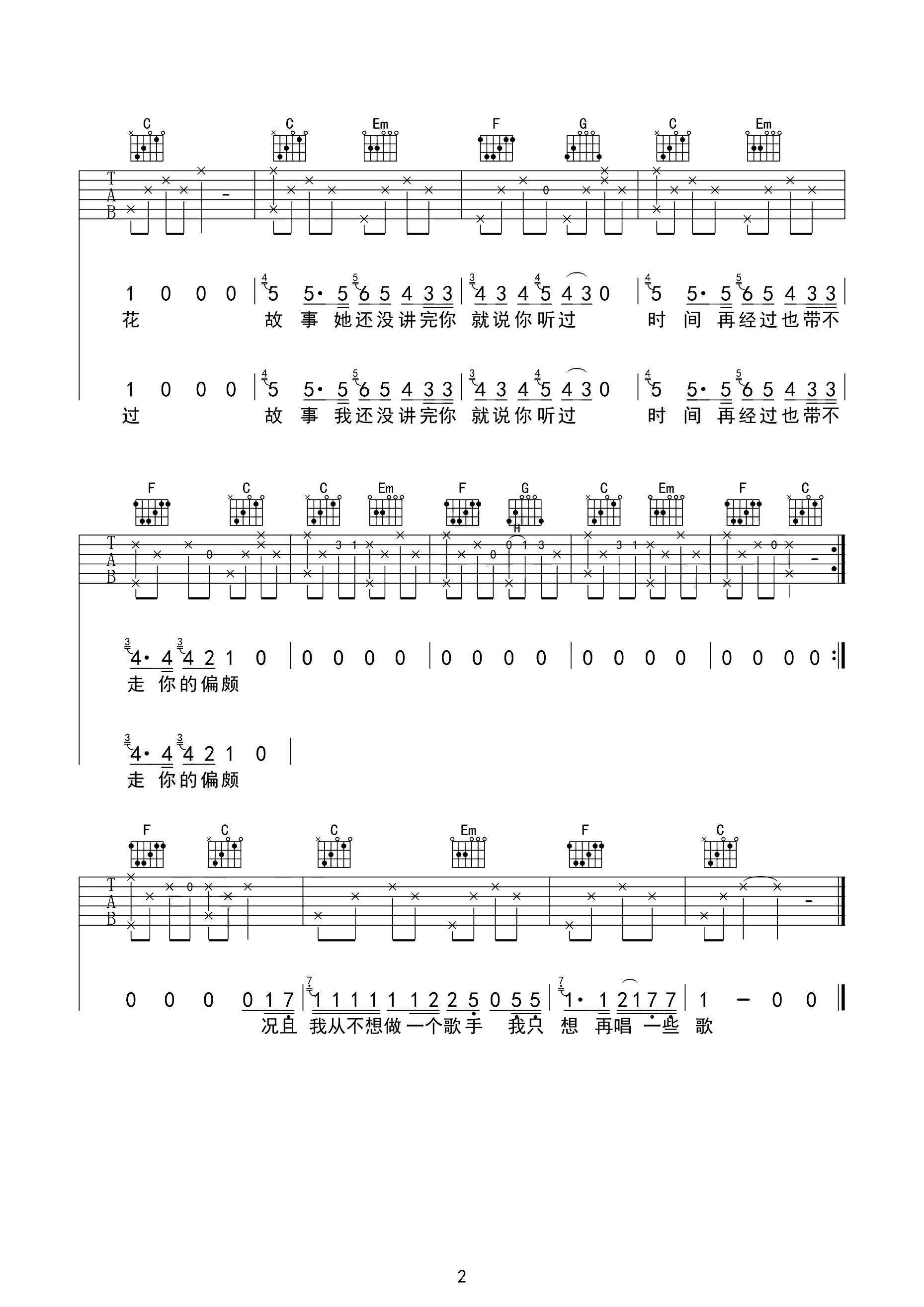花儿乐队《结果》吉他谱_E调指法_Re指