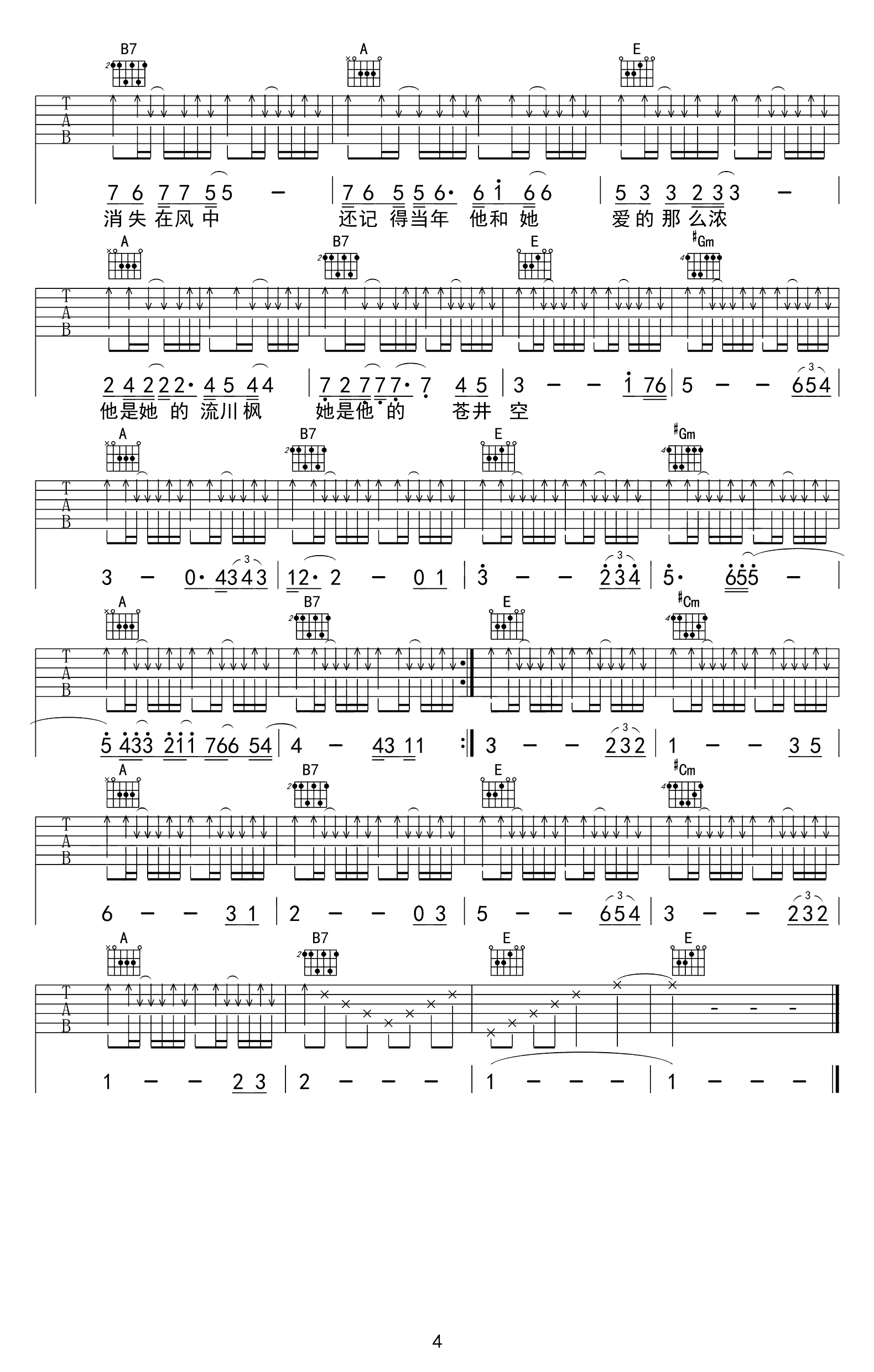 静静的 完整版吉他谱